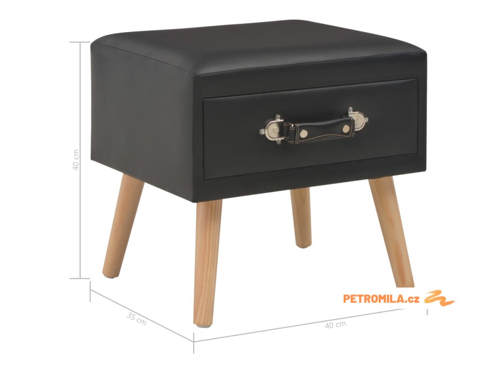 Noční stolek černý 40 x 35 x 40 cm umělá kůže
