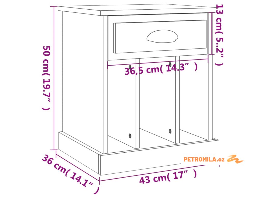 - Dostatek úložného prostoru: Noční stolek je navržen se zásuvkou a 3 přihrádkami, kde budete mít vaše věci uspořádané a neustále po ruce.