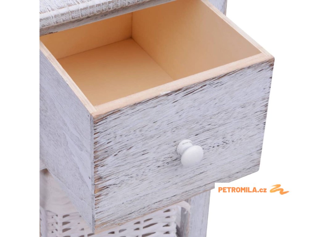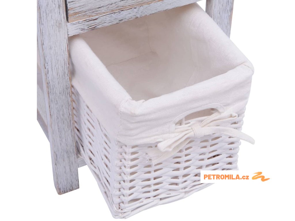 Tento kompaktní noční stolek má hladce vysouvatelný šuplík, který poskytuje dostatek místa na vaše drobnosti, abyste je měli uspořádané a po ruce. Pod šuplíkem najdete vyjímatelný pletený košík, který je dalším úložným prostorem. Látková výstelka košíku se dá vyjmout a vyprat.