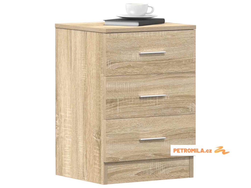 Noční stolek je vyrobený z kvalitního kompozitního dřeva, je proto robustní, odolný a všestranný. Vzhledem k jeho univerzálnímu designu ho můžete uplatnit také jako stolek k pohovce v obývacím pokoji. Tři zásuvky vám poskytnou spoustu úložného prostoru pro vaše časopisy, knihy, dálkové ovladače a mnoho dalších předmětů, ve kterých chcete mít pořádek, ale přitom je mít na dosah ruky. Noční stolek se navíc dá snadno čistit vlhkým hadříkem.