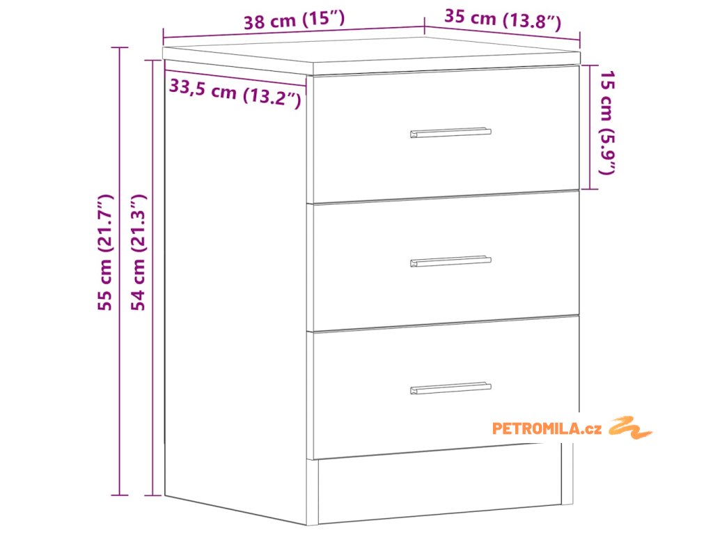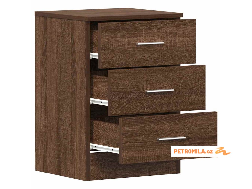 - Spousta úložného prostoru: Tato klasická odkládací skříňka disponuje třemi zásuvkami a poskytuje dostatek místa pro přehledné uložení vašich drobných věcí, které tak budete mít pěkně po ruce.