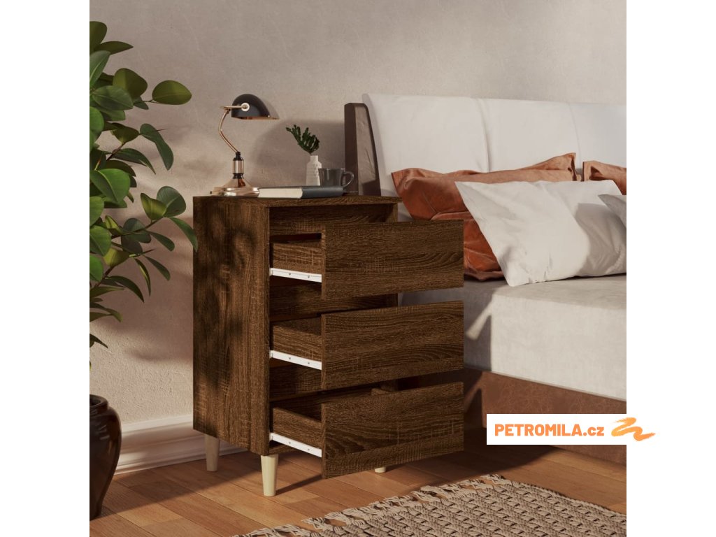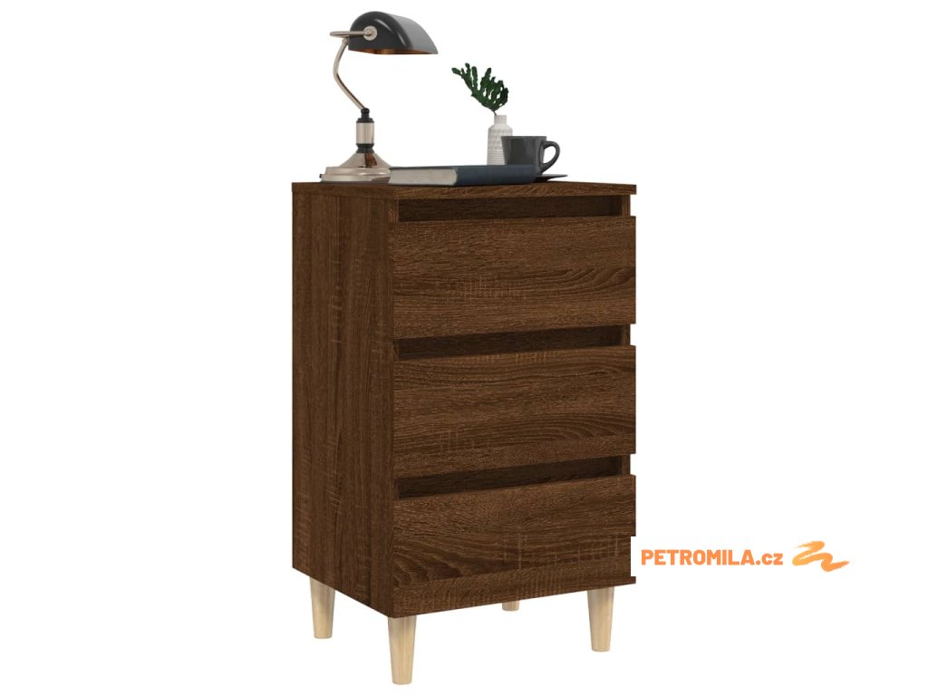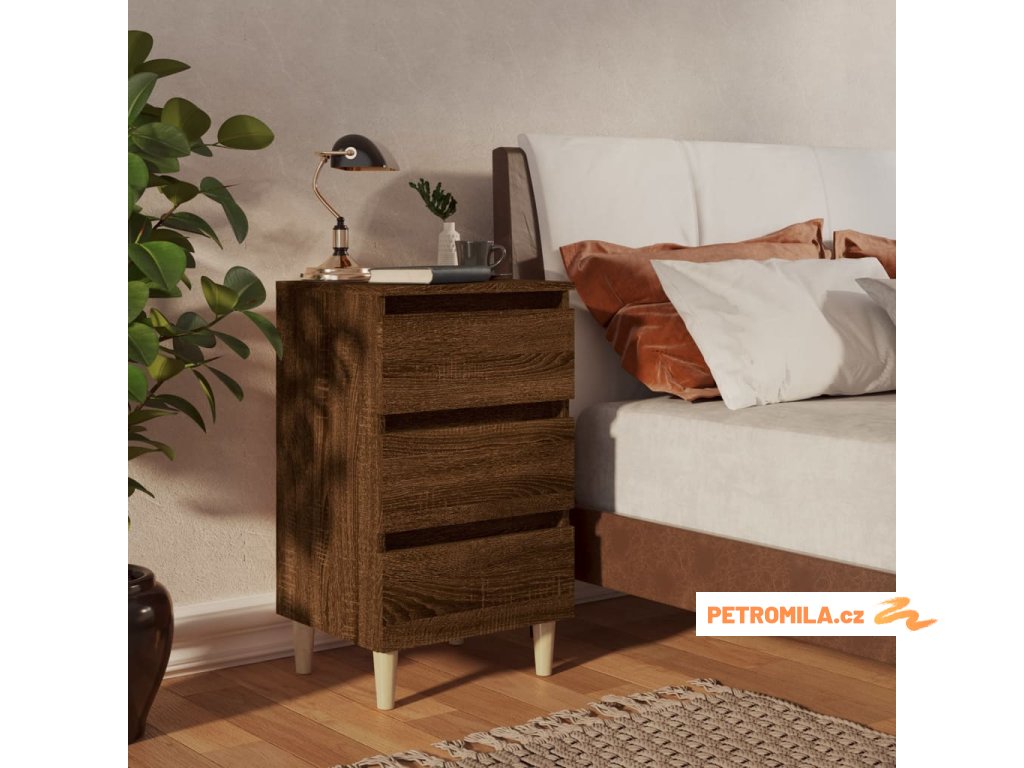 Noční stolek masivní dřevěné nohy hnědý dub 40 x 35 x 69 cm