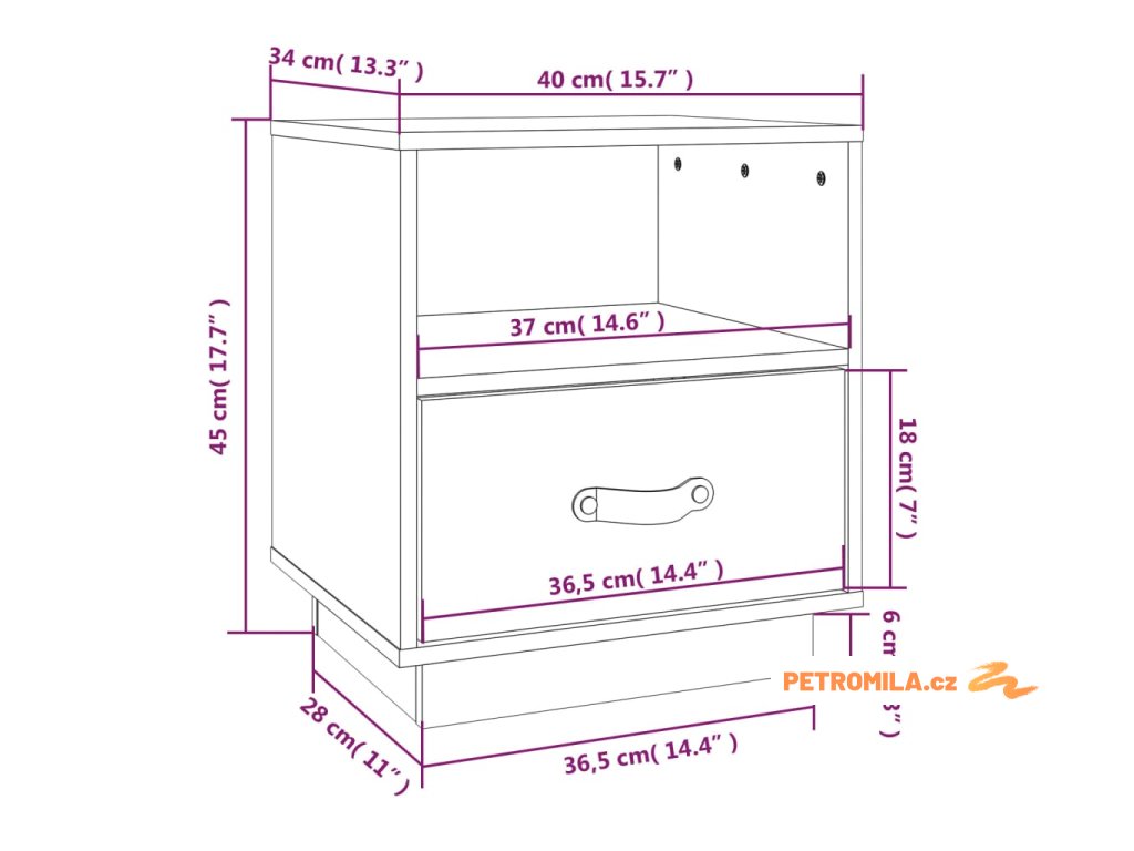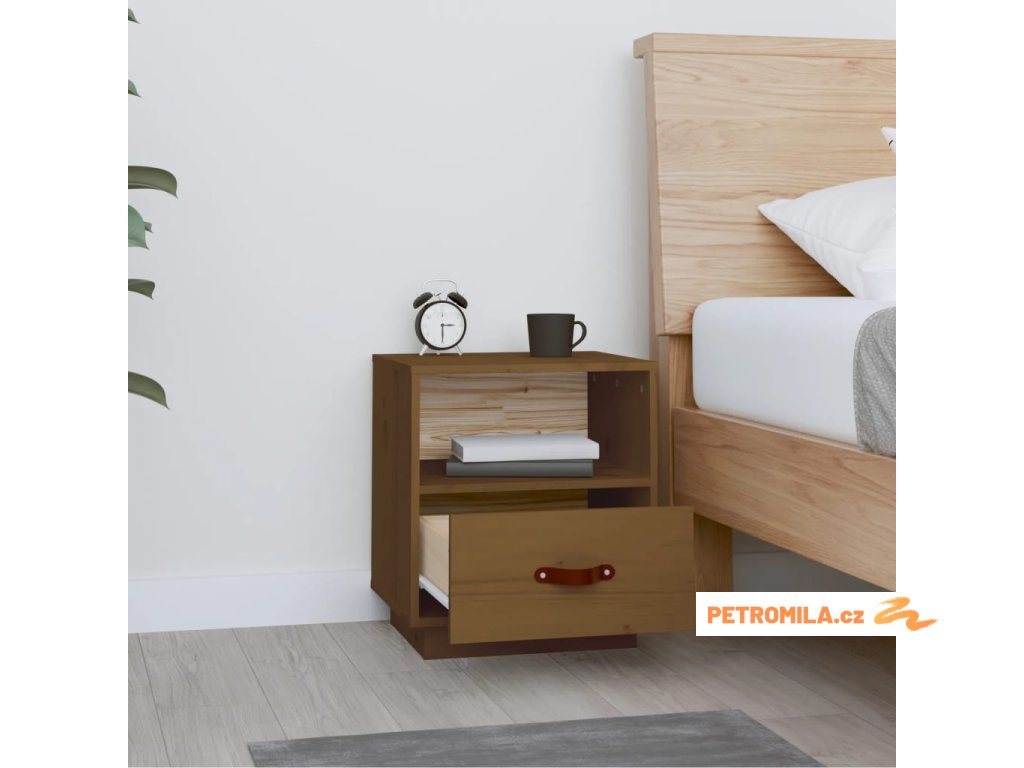 Noční stolek medově hnědý 40 x 34 x 45 cm masivní borové dřevo