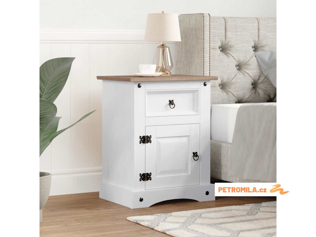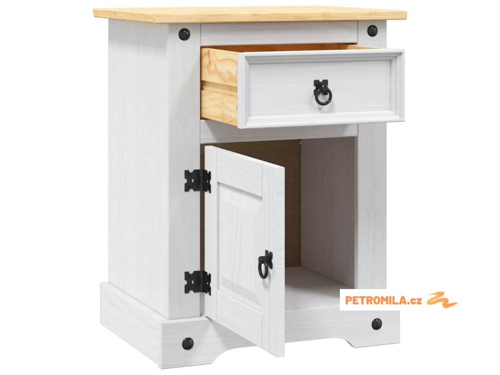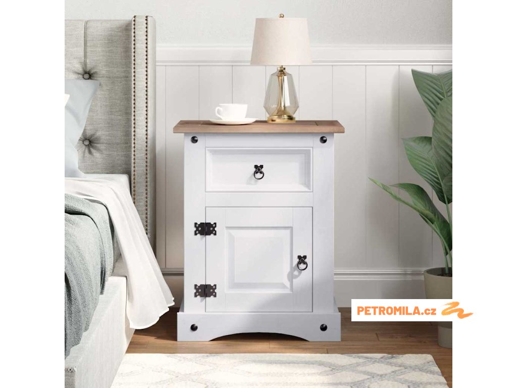 Noční stolek mexická borovice Corona bílá 53 x 39 x 67 cm