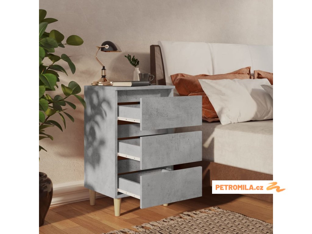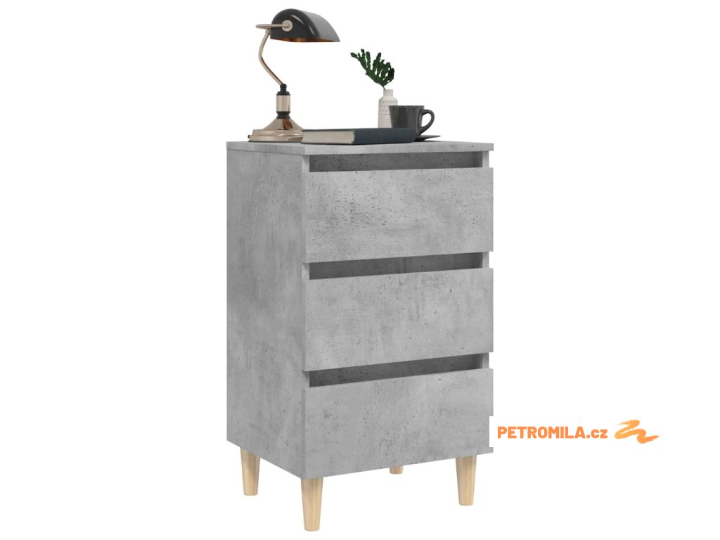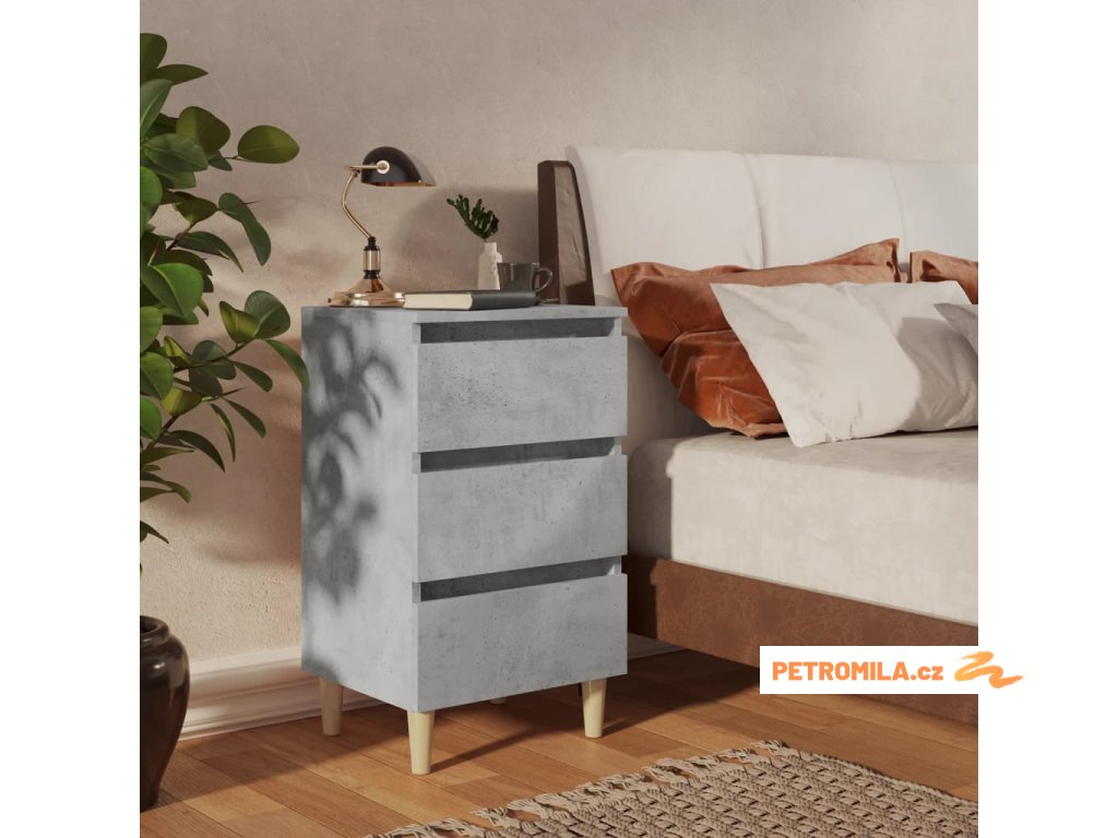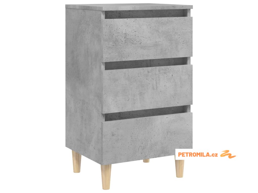 Noční stolek s dřevěnými nohami betonově šedý 40 x 35 x 69 cm