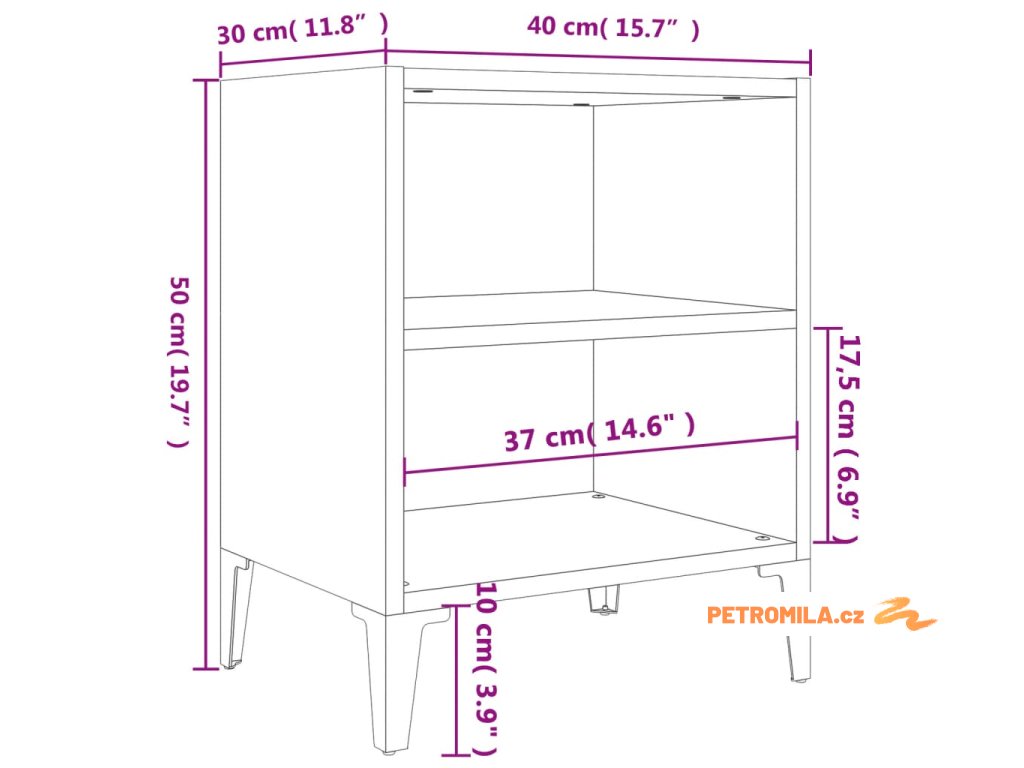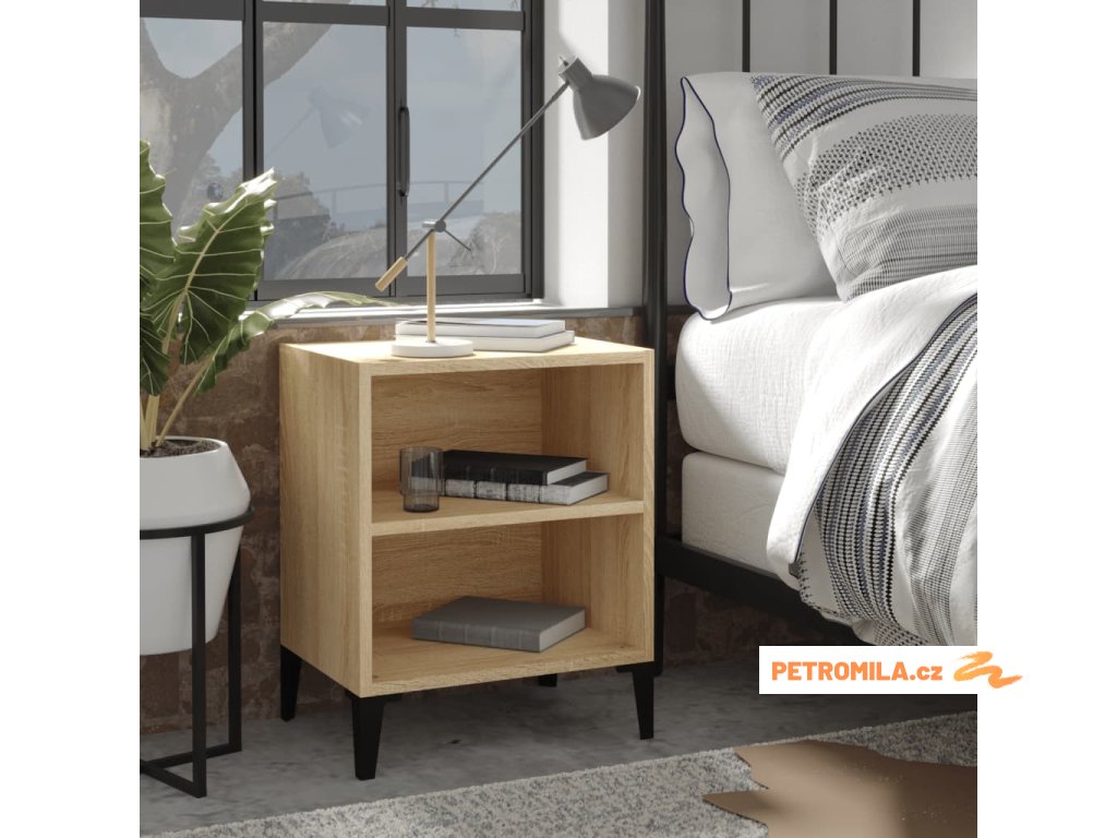 Noční stolek s kovovými nohami dub sonoma 40 x 30 x 50 cm