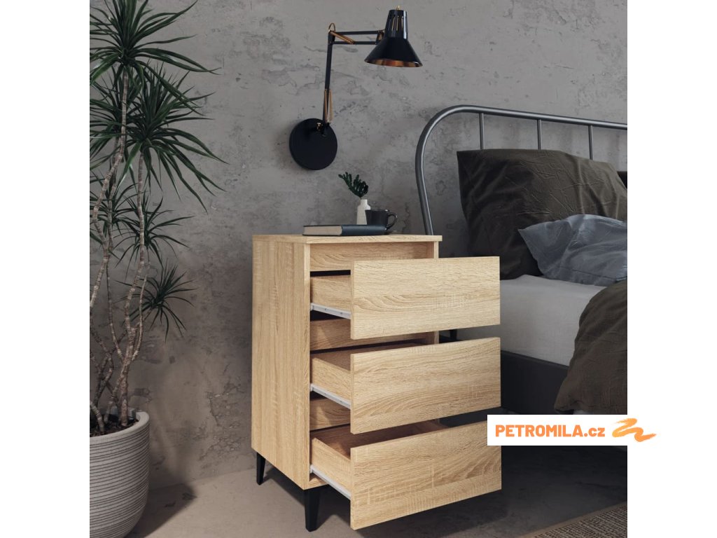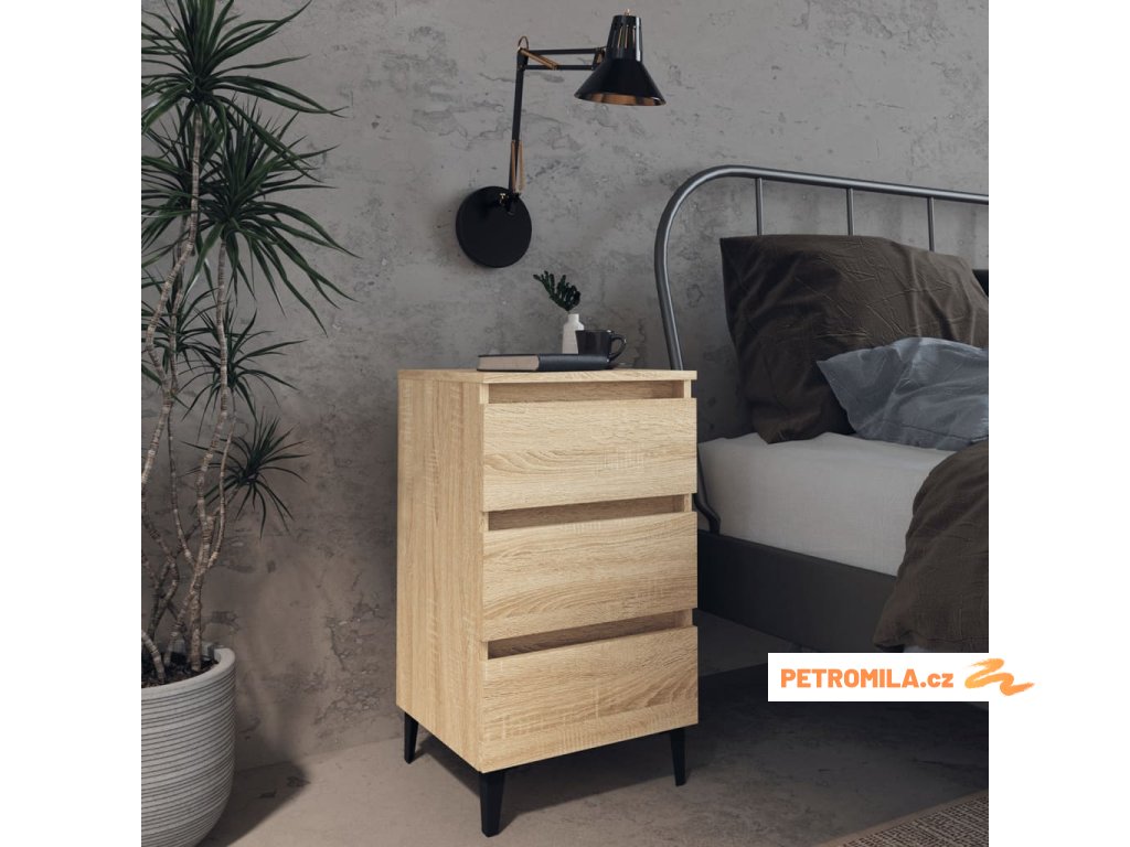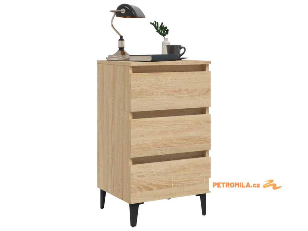 Noční stolek s kovovými nohami dub sonoma 40 x 35 x 69 cm