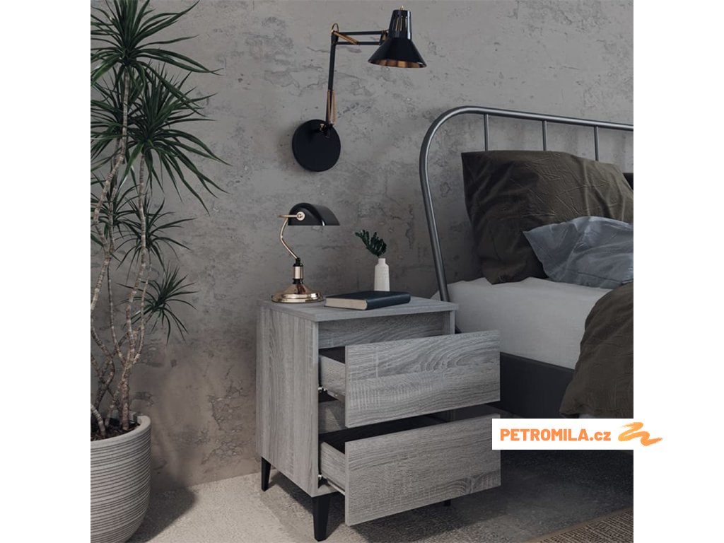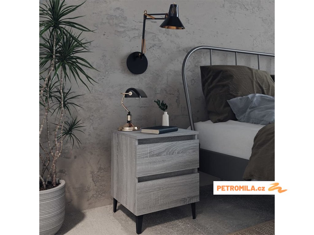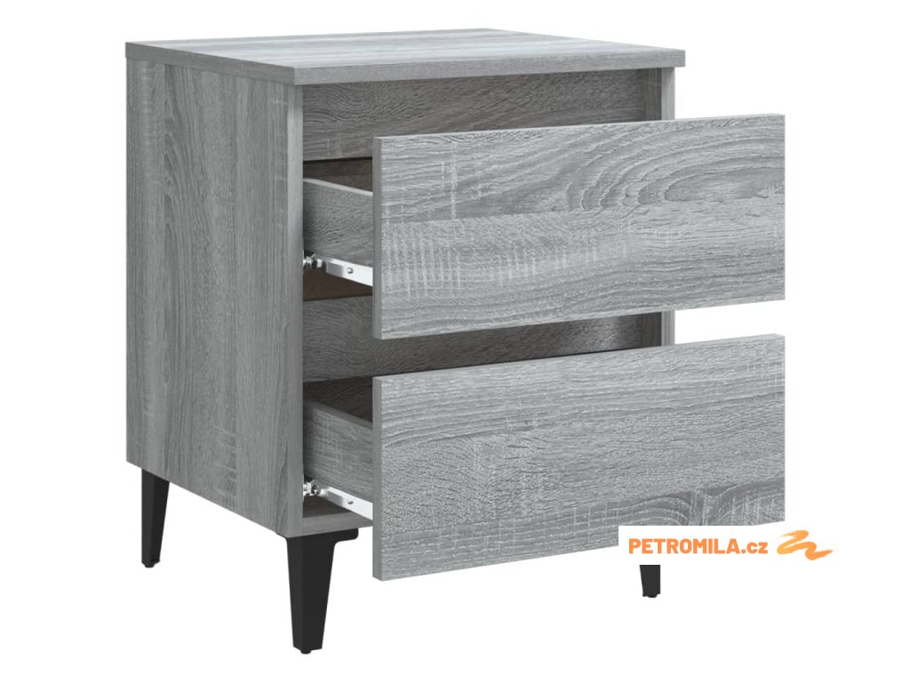 Noční stolek s kovovými nohami šedý sonoma 40 x 35 x 50 cm