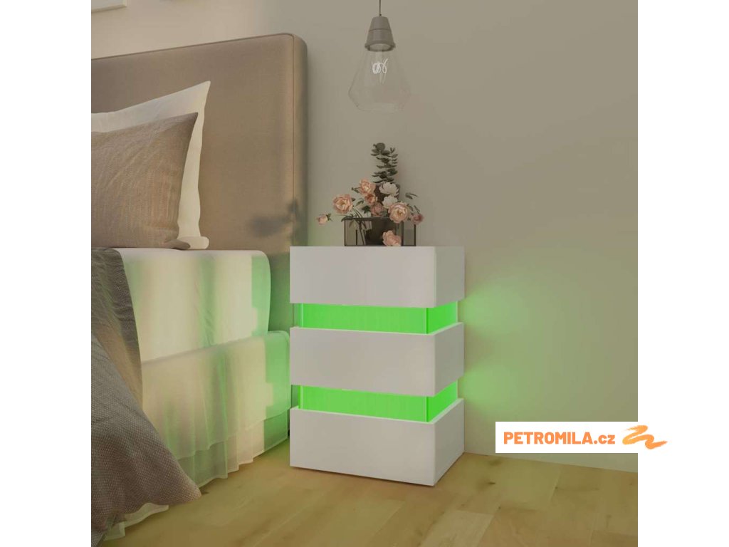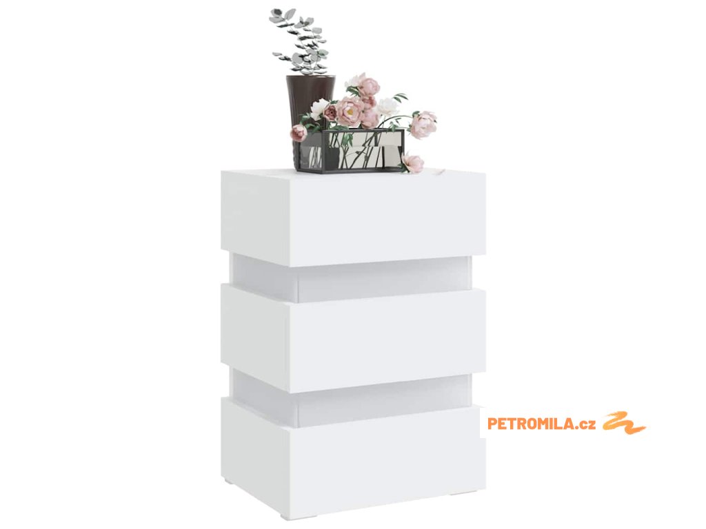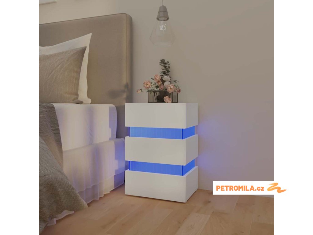 Noční stolek s LED bílý 45 x 35 x 67 cm kompozitní dřevo
