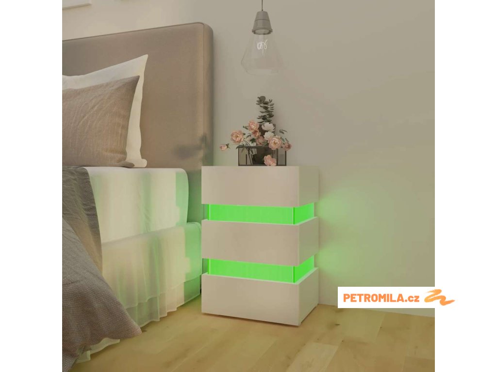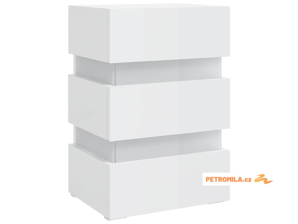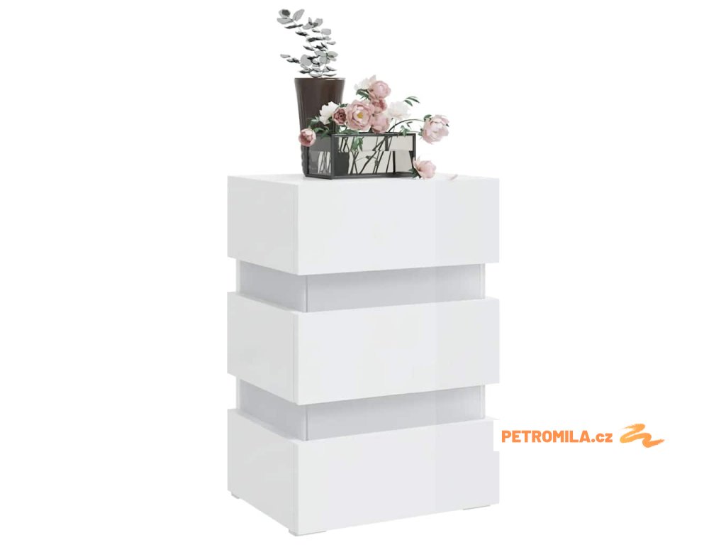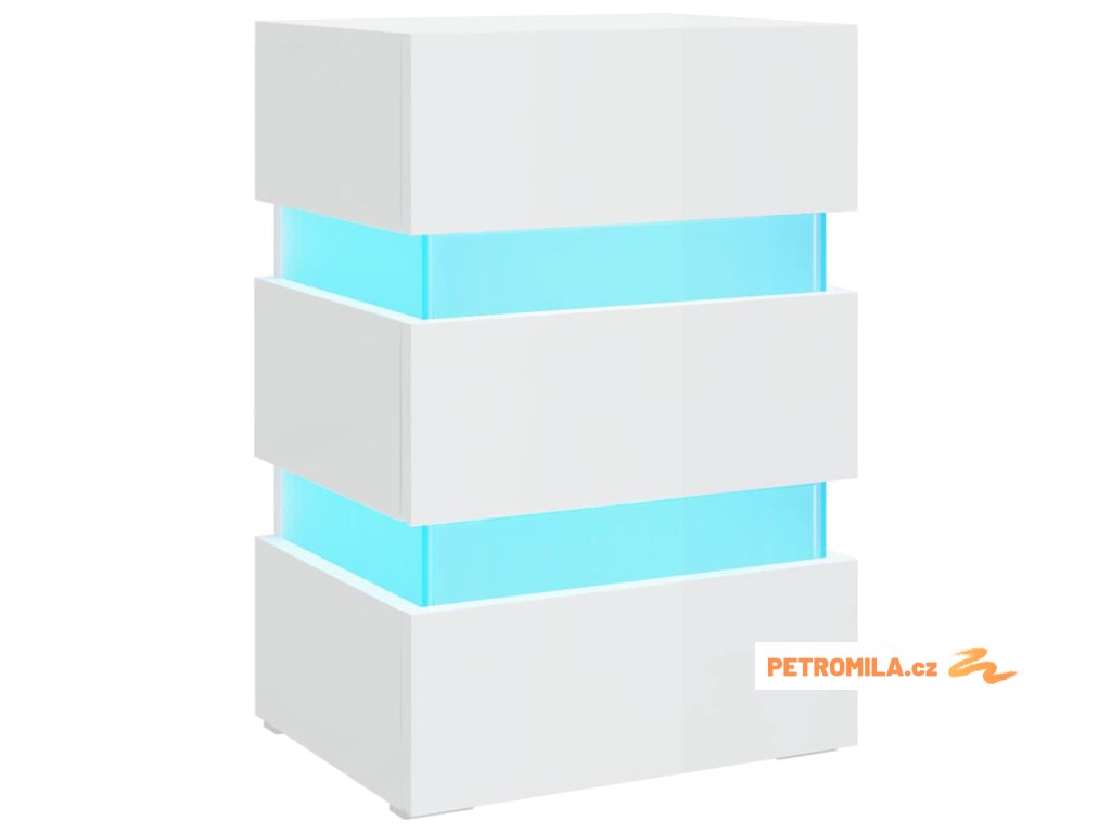 Noční stolek s LED lesklý bílý 45 x 35 x 67 cm kompozitní dřevo