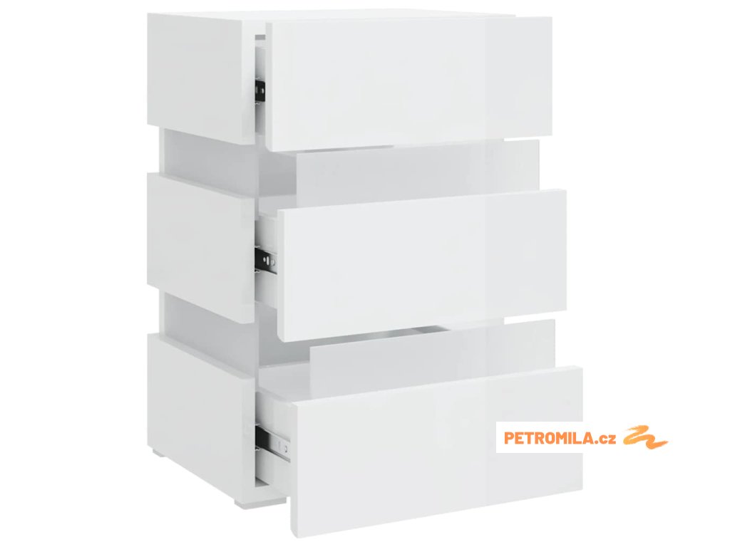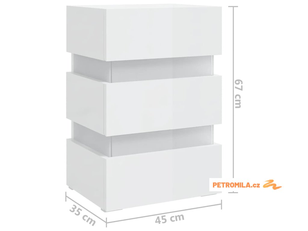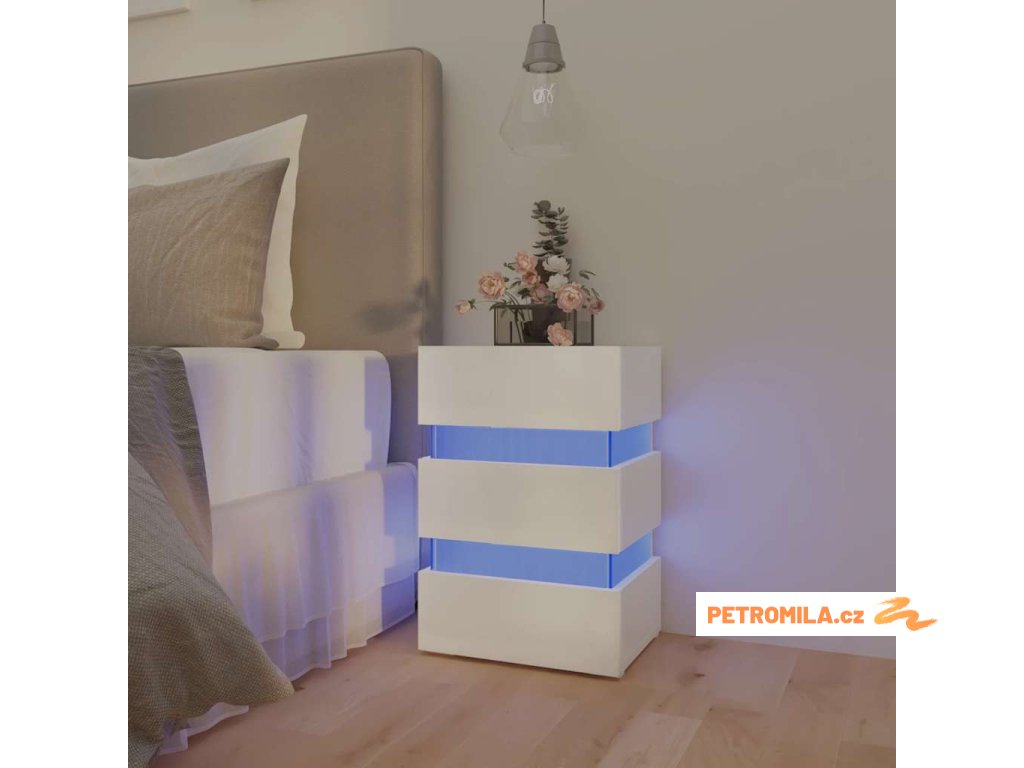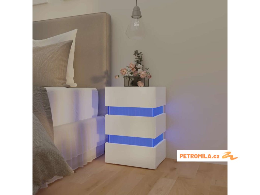 Noční stolek s LED lesklý bílý 45 x 35 x 67 cm kompozitní dřevo