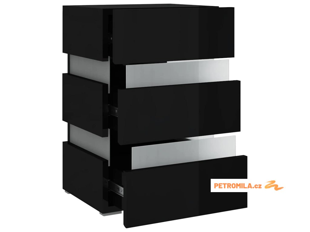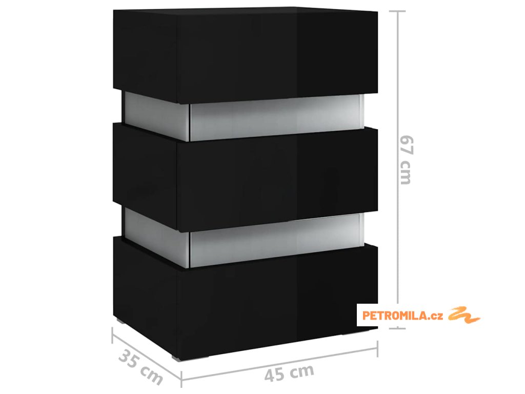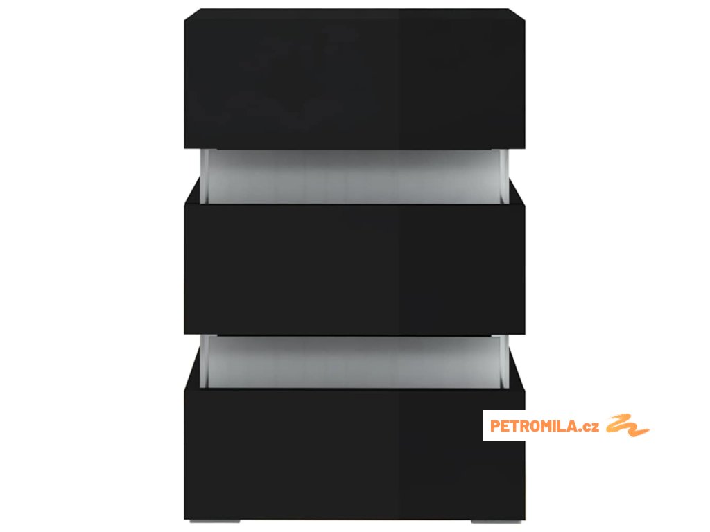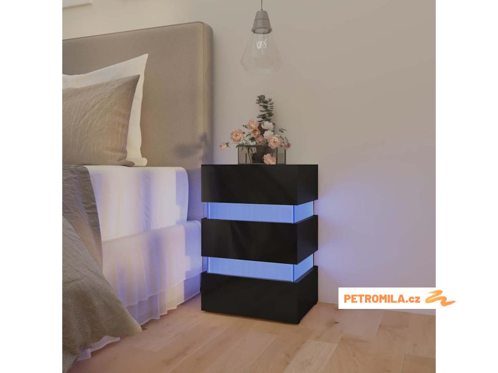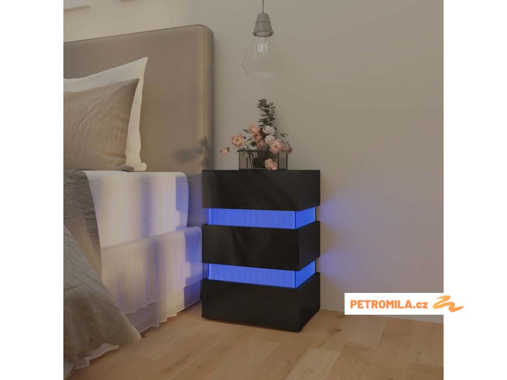 Noční stolek s LED lesklý černý 45x35x67 cm kompozitní dřevo