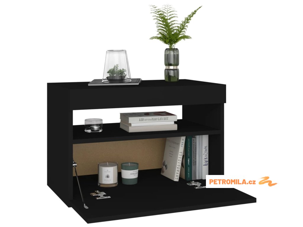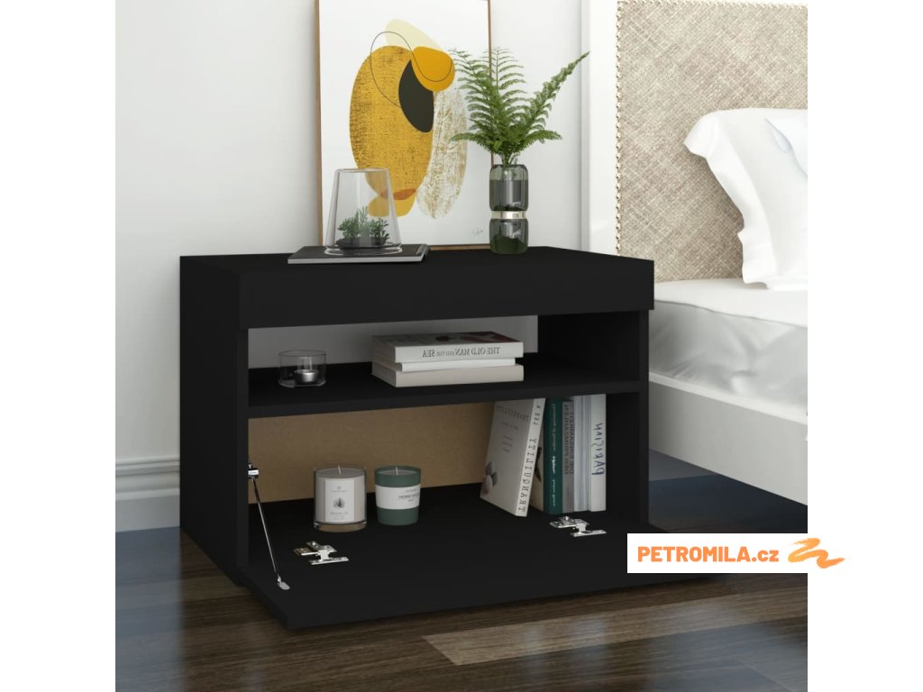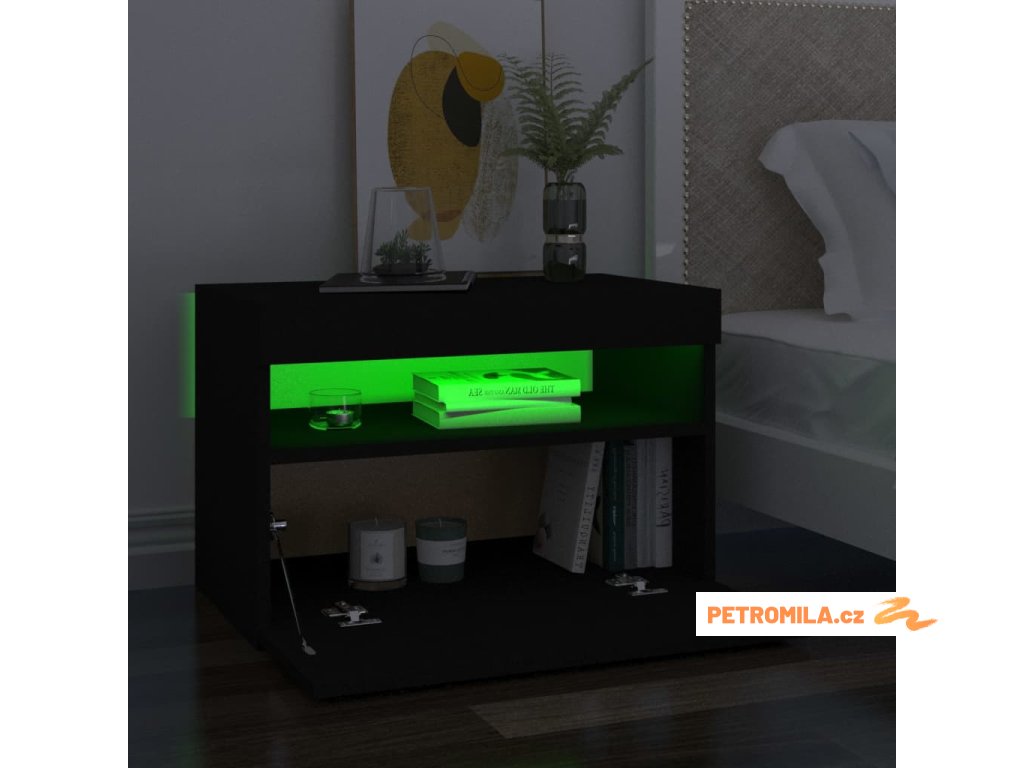 Noční stolek s LED osvětlením černý 60x35x40 kompozitní dřevo