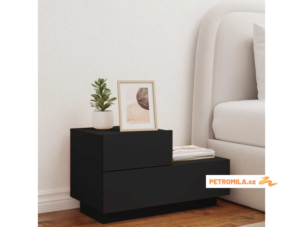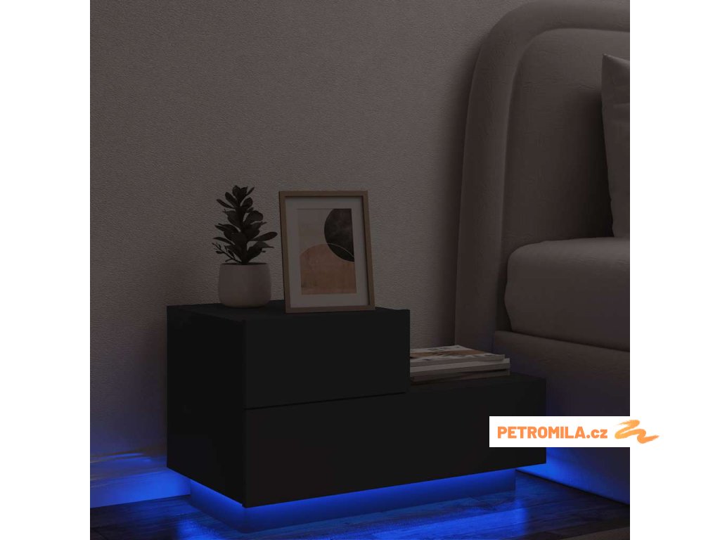 Noční stolek s LED osvětlením černý 70 x 36 x 40,5 cm
