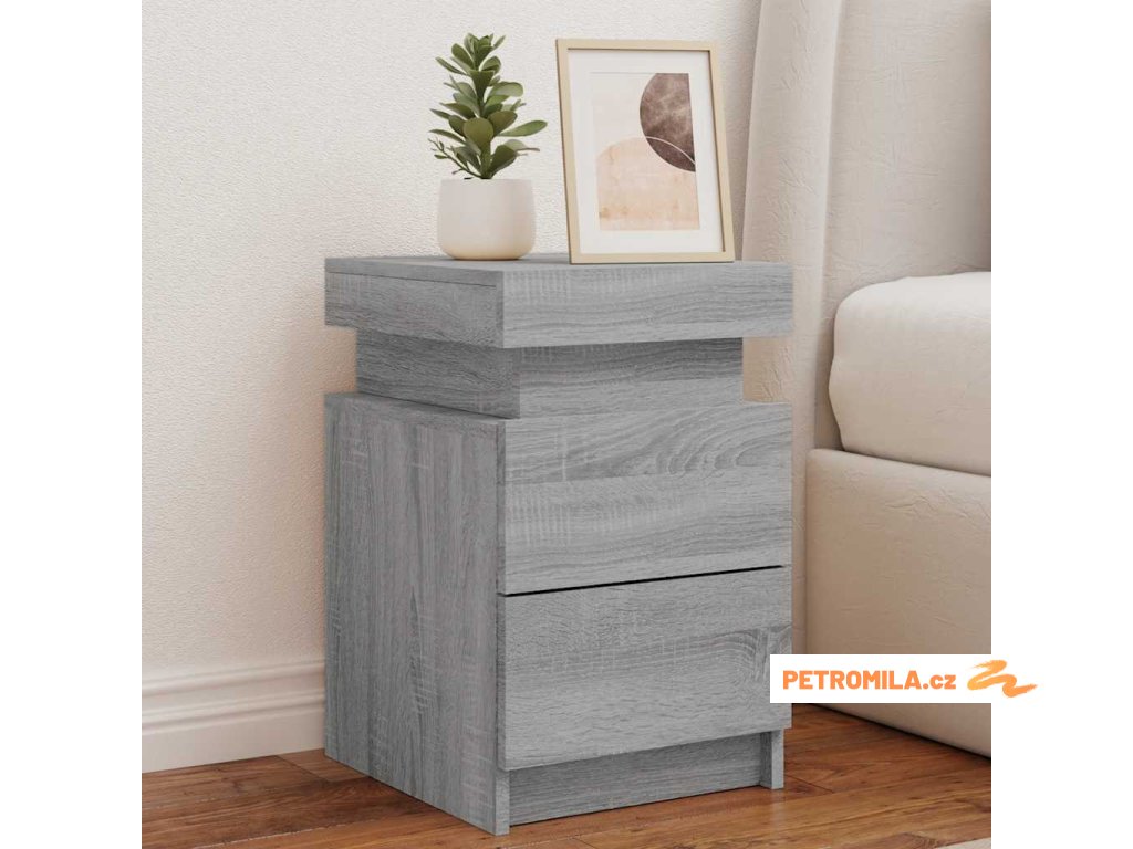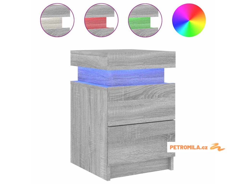 Noční stolek s LED osvětlením šedý sonoma 35 x 39 x 55 cm