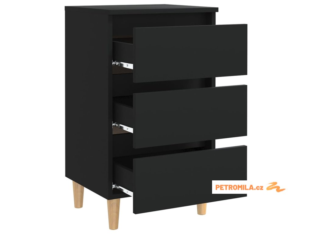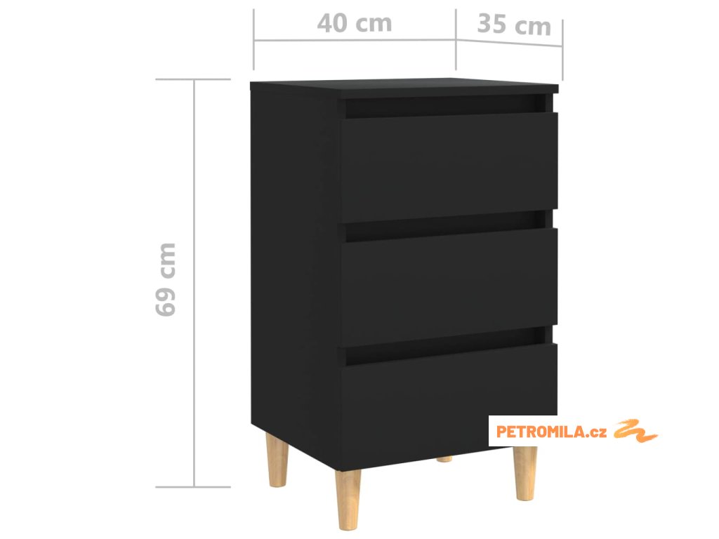 Noční stolek s masivními dřevěnými nohami černý 40 x 35 x 69 cm
