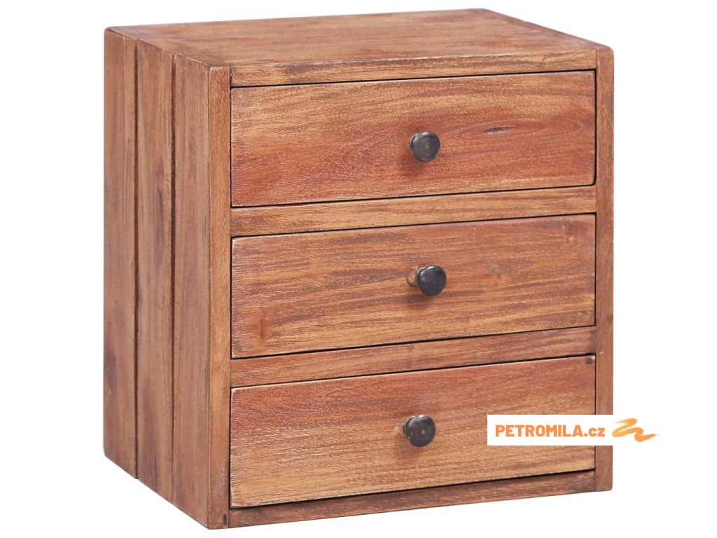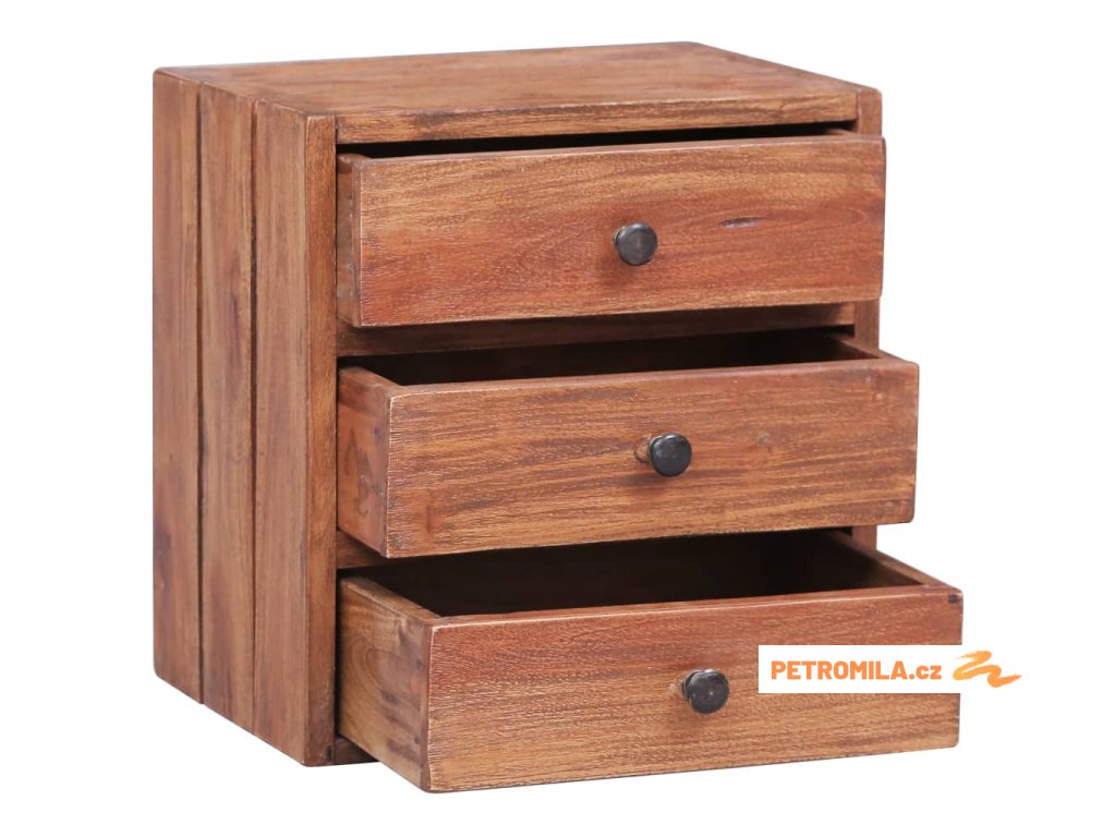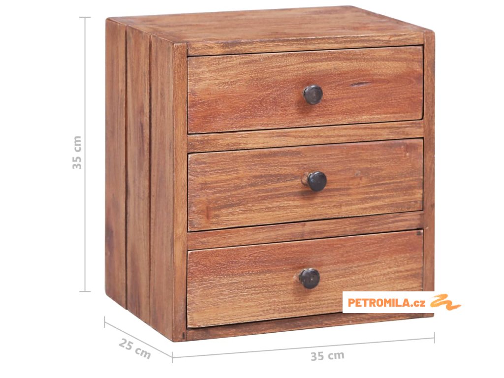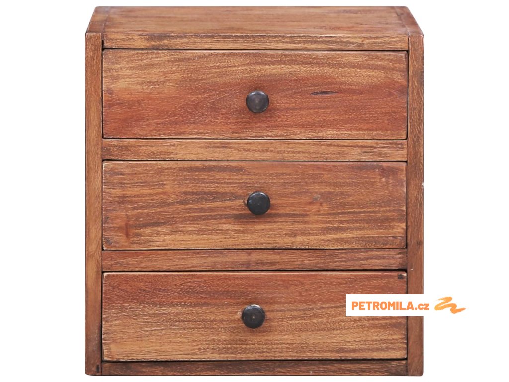 Noční stolek se 3 zásuvkami 35 x 25 x 35 cm masivní mahagon