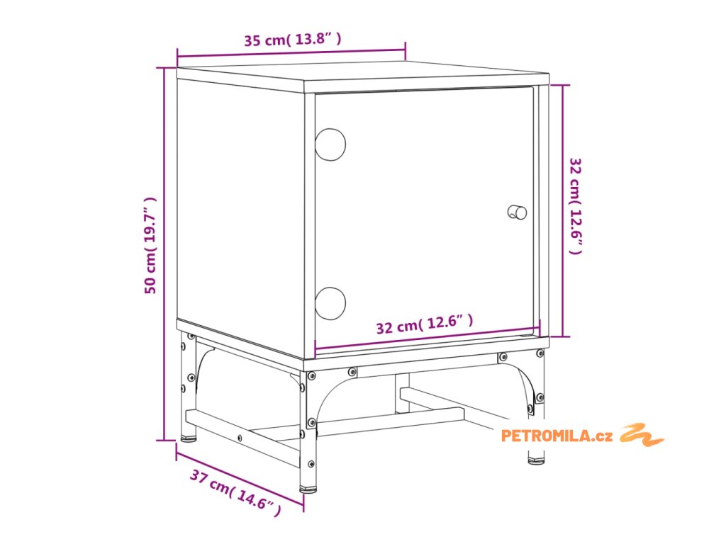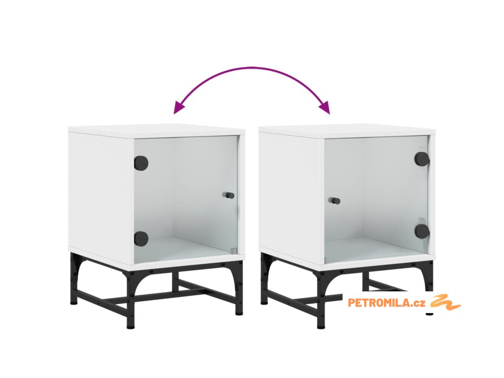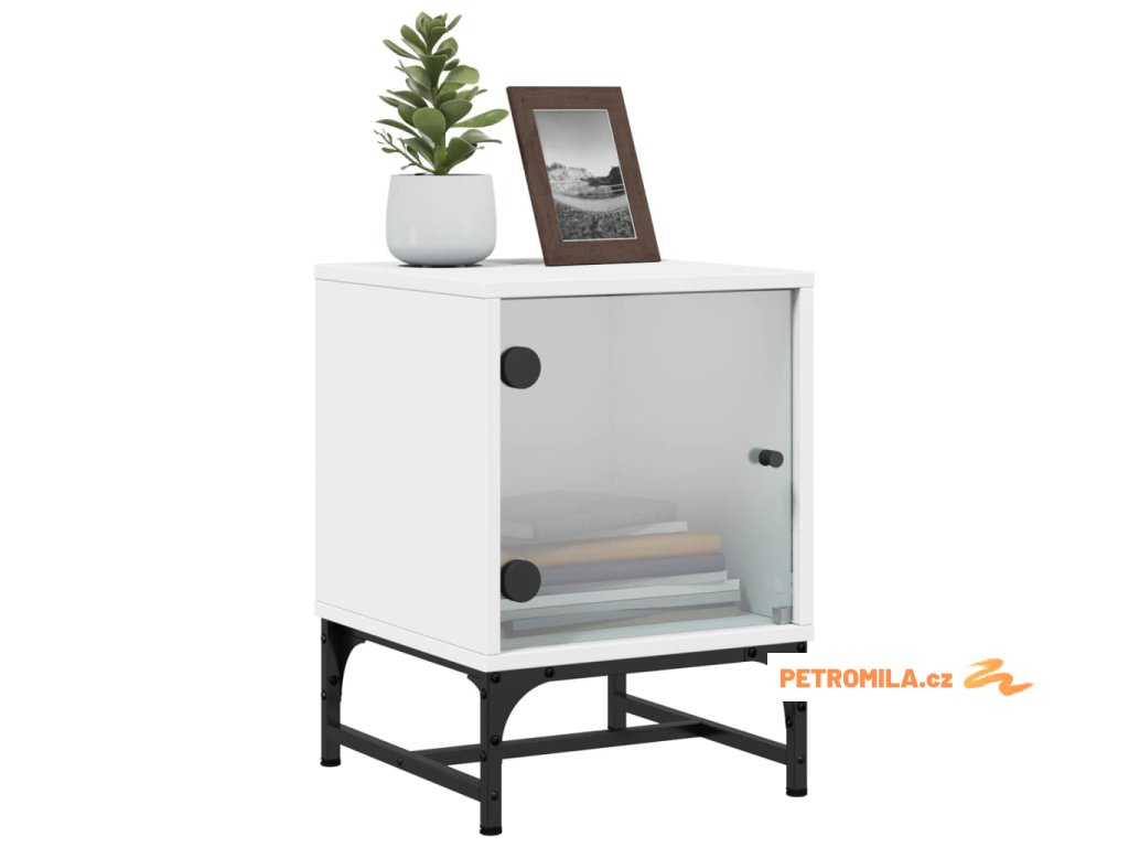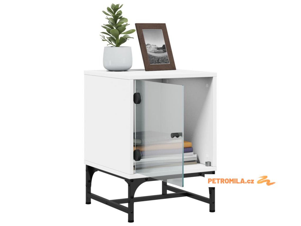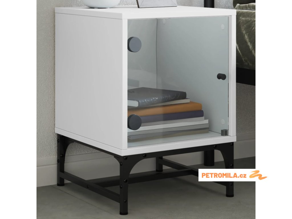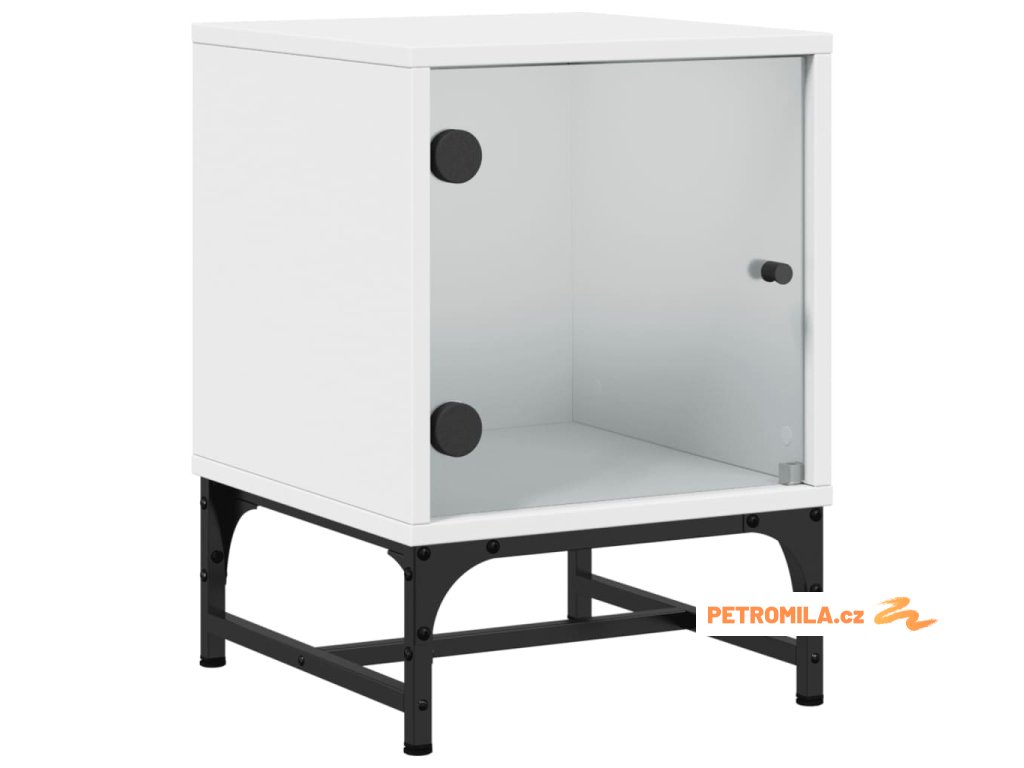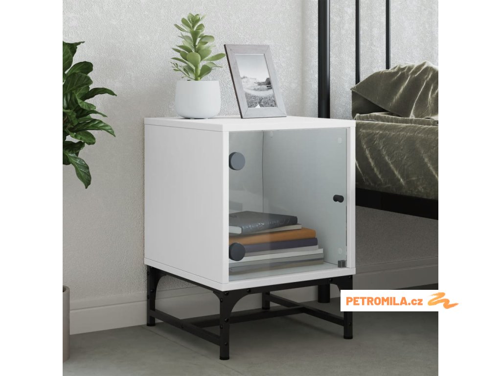 Noční stolek se skleněnými dvířky bílý 35 x 37 x 50 cm