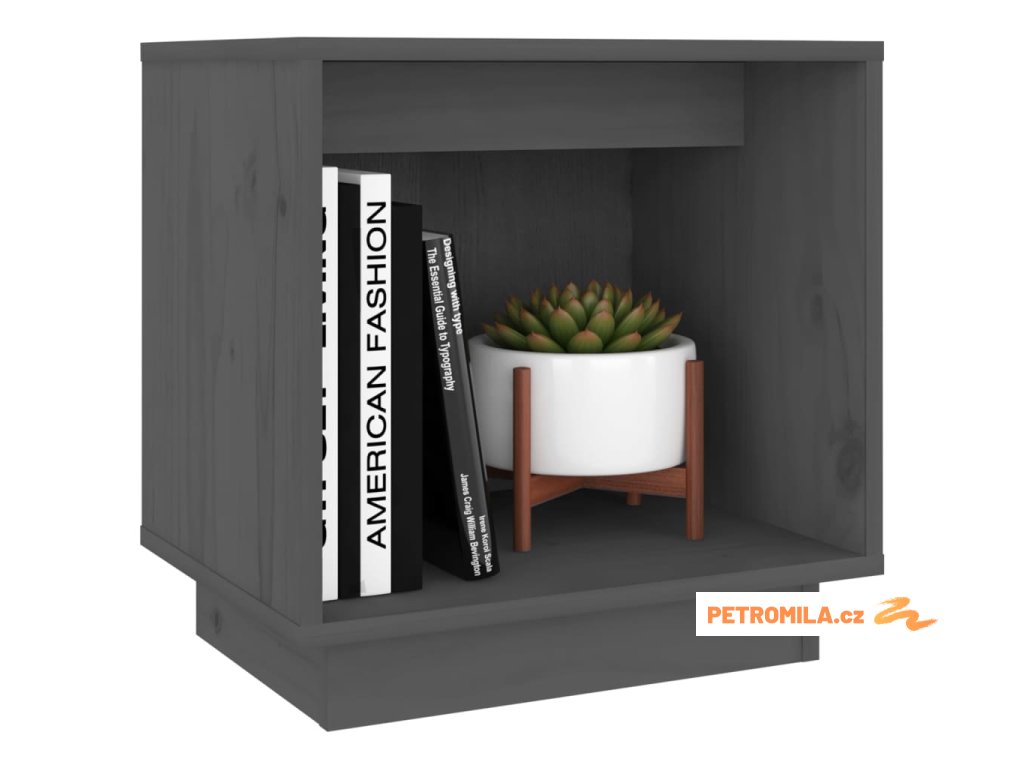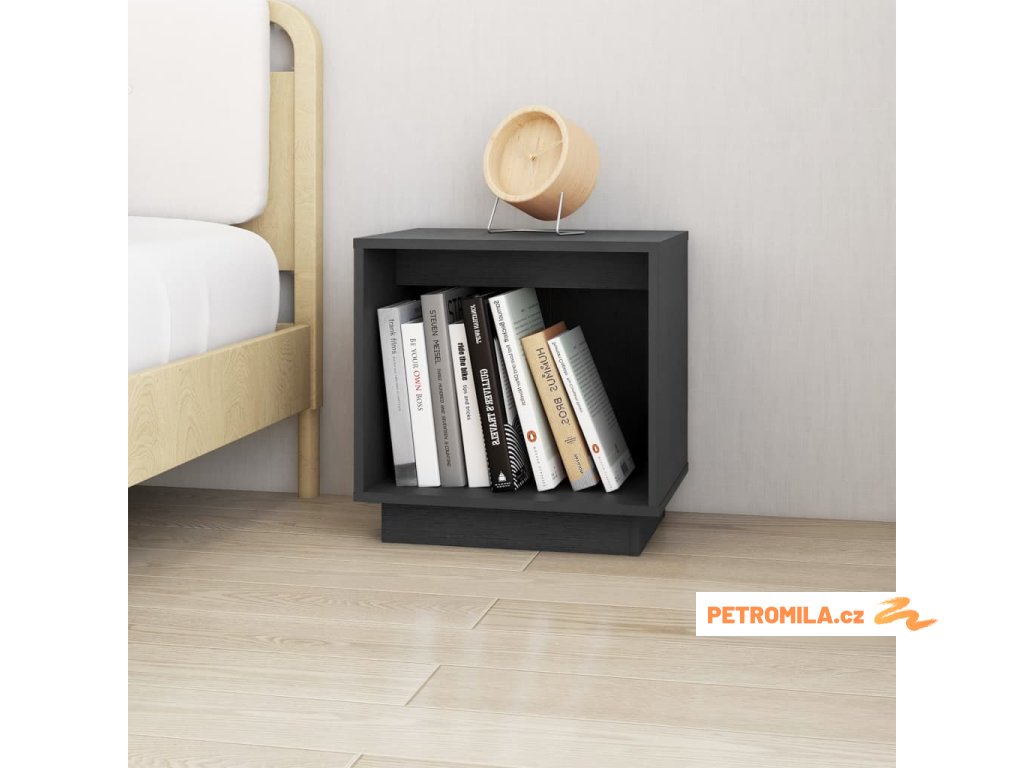 Noční stolek šedý 40 x 30 x 40 cm masivní borové dřevo