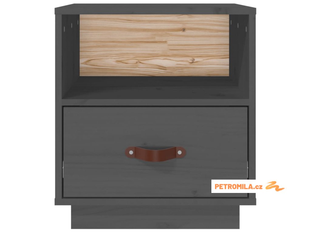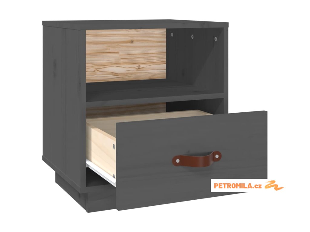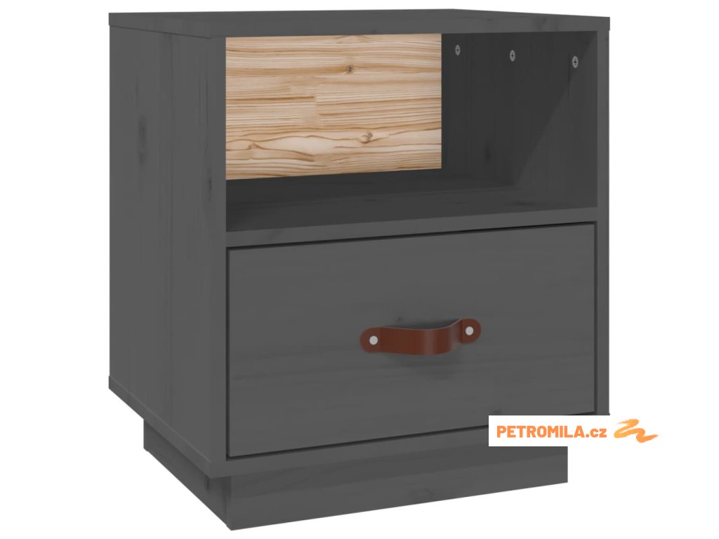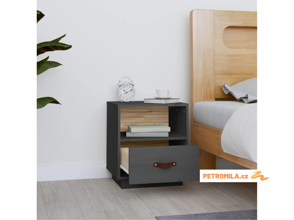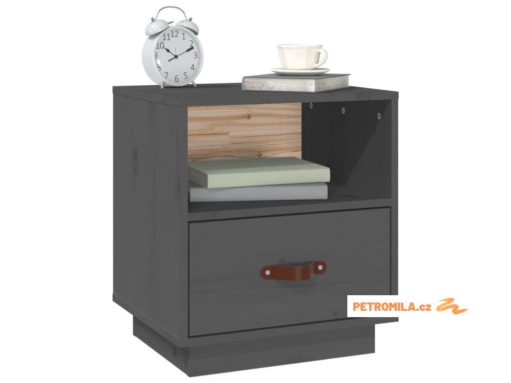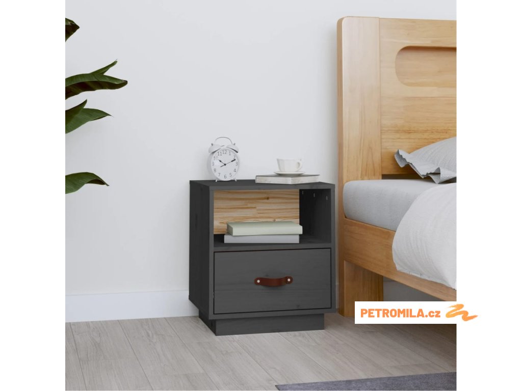 Noční stolek šedý 40 x 34 x 45 cm masivní borové dřevo
