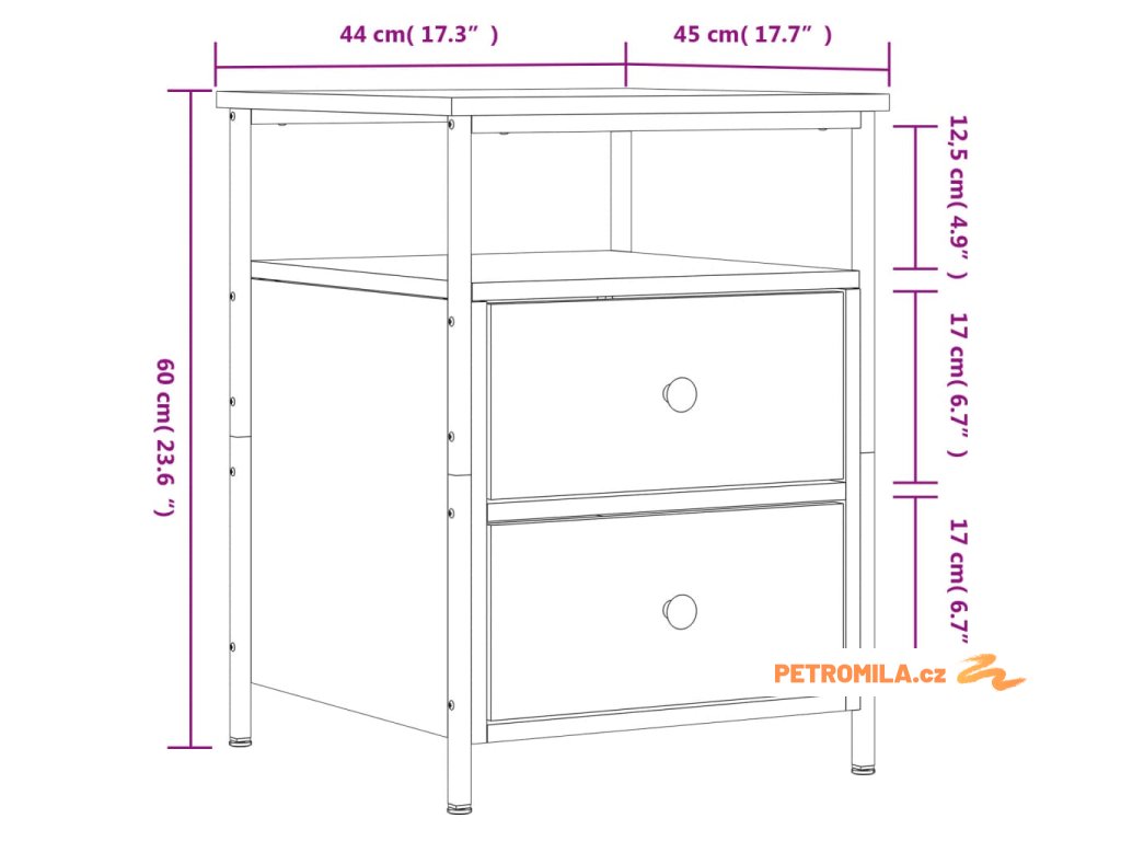Noční stolek šedý sonoma 44 x 45 x 60 cm kompozitní dřevo