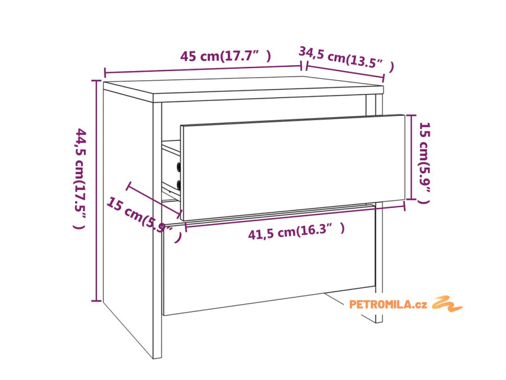 Noční stolek šedý sonoma 45 x 34,5 x 44,5 cm dřevotříska