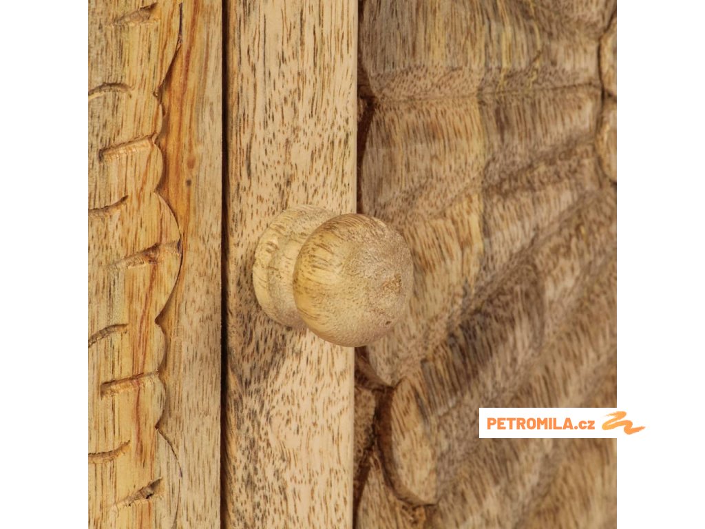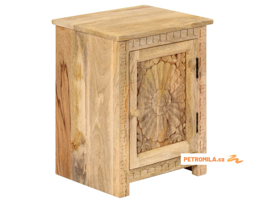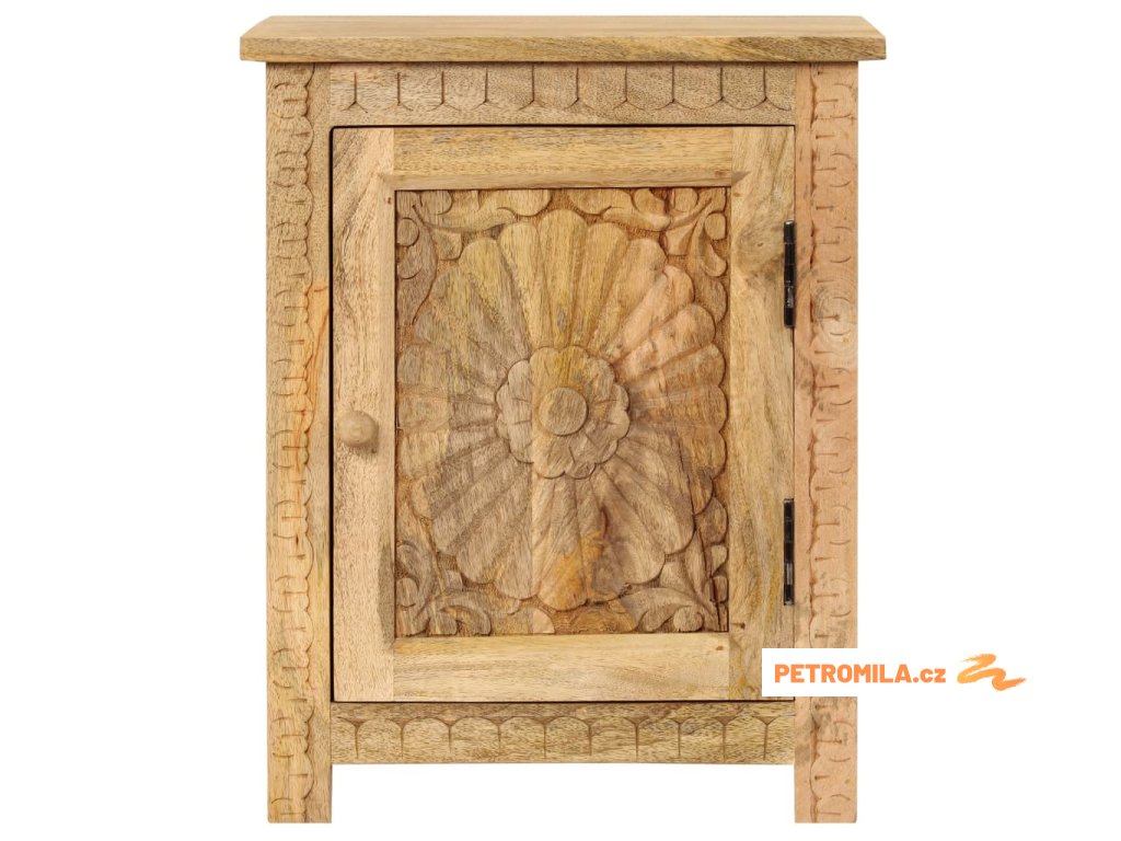 Odkládací stolek je vyroben z masivního mangovníkového dřeva a je vysoce stabilní a odolný. Pevná horní deska je ideální k odložení vašich sklenic, knih, šálků na čaj atd. Noční stolek poskytuje dostatek úložného prostoru pro úhledné uspořádání různých předmětů. Vyřezávané detaily dodávají nočnímu stolku nádech elegantního šarmu. Tento výrobek je dodávaný ve složeném stavu, montáž není nutná.