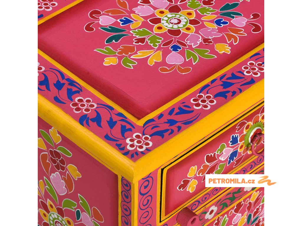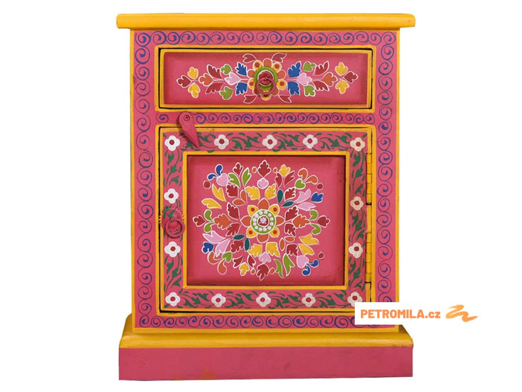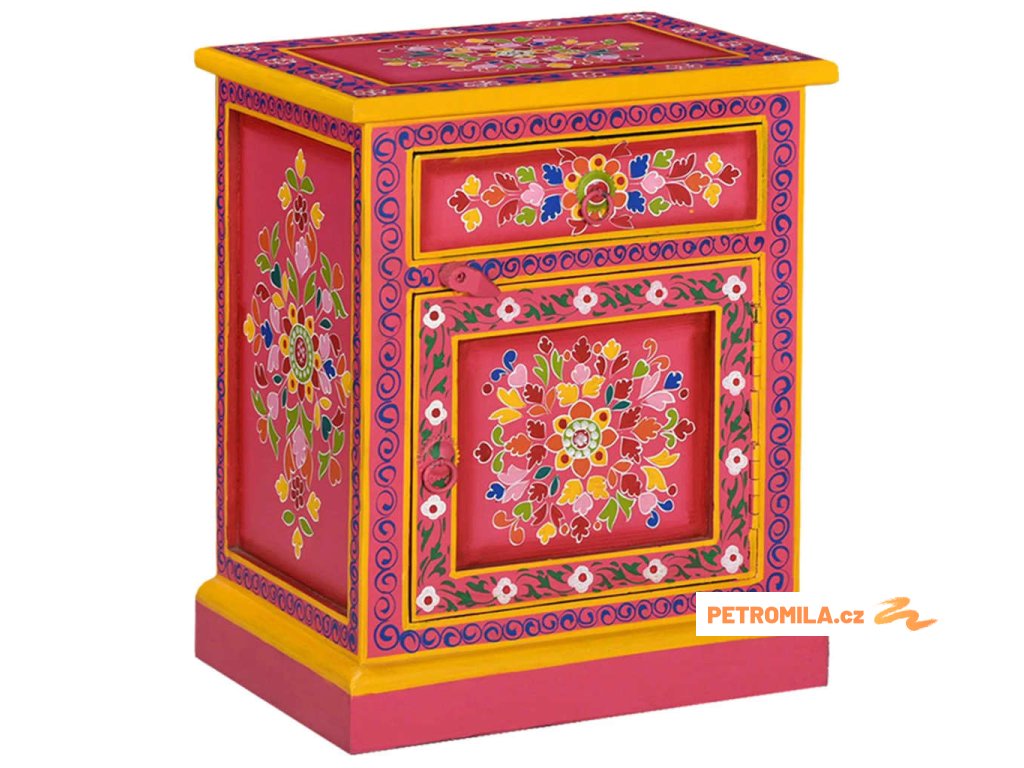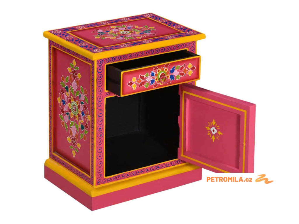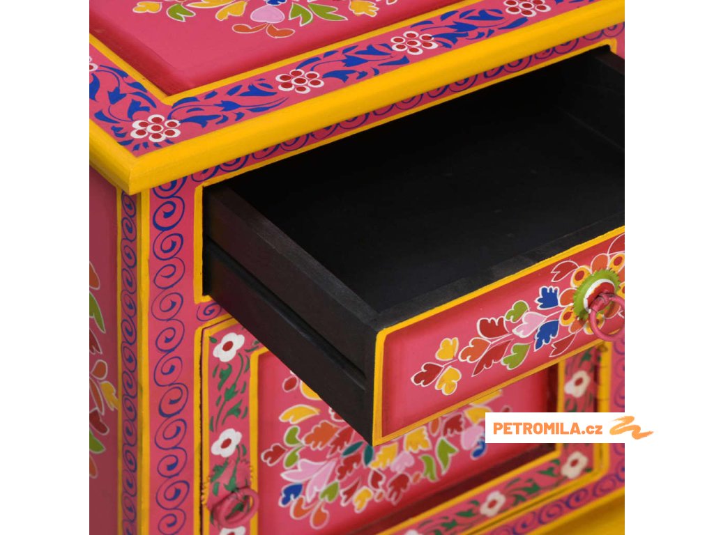 Noční stolek z masivního mangovníku ručně malovaný růžový