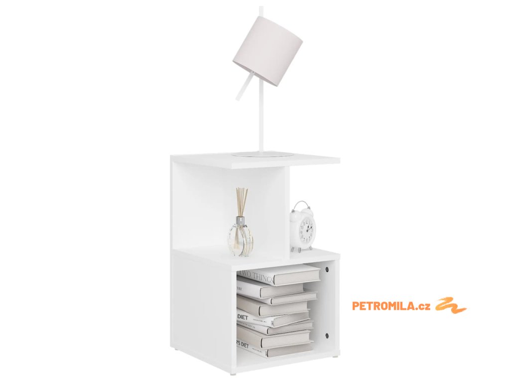 Stabilní noční stolek s otevřenými přihrádkami nabízí spoustu úložného prostoru pro vaše časopisy, knihy, ovladače a další maličkosti, které tak budete mít přehledně uspořádané a po ruce. Robustní stolní desku lze použít k vystavení dekorativních předmětů, jako jsou fotorámečky nebo pokojové rostliny. Tento noční stolek se navíc snadno čistí vlhkým hadříkem.