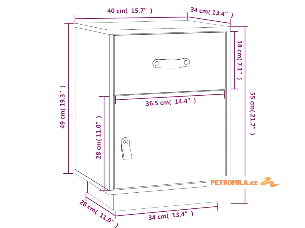 Noční stolky 2 ks bílé 40 x 34 x 55 cm masivní borové dřevo