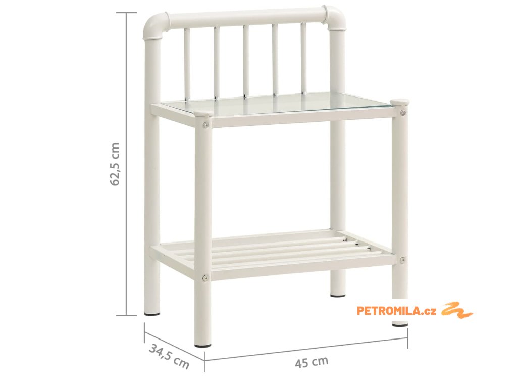 Noční stolek má kovový rám a je vysoce stabilní a robustní. Skleněná polička se snadno čistí a poskytuje spoustu místa pro přehledné uspořádání věcí, které chcete mít po ruce. Lze ho také použít jako stolek pod telefon, odkládací stolek atd.
