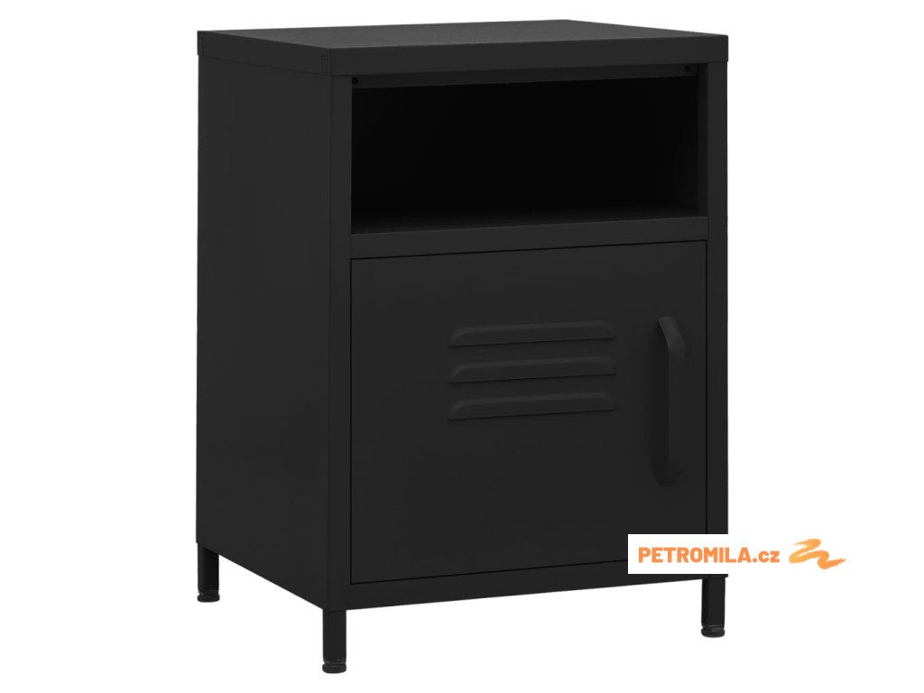 Noční stolek je vyrobený z oceli, takže je odolný a snadno se čistí. Najdete v něm 1 otevřenou přihrádku a 1 přihrádku s dvířky, které vám poskytnou spoustu místa k přehlednému uložení vašich DVD, multimediálních zařízení, knížek a dalších důležitých maličkostí tak, abyste je měli na dosah ruky. Nivelační nohy ve spodní části umožňují nastavit výšku podle vašich potřeb.