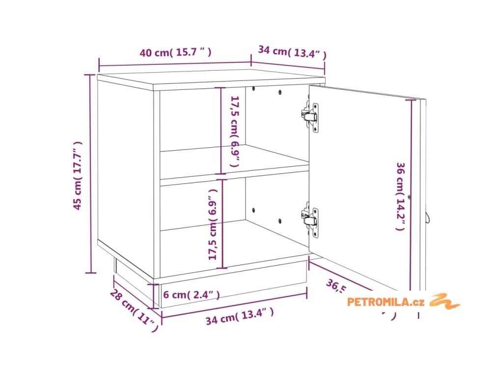 Noční stolky 2 ks černé 40 x 34 x 45 cm masivní borové dřevo