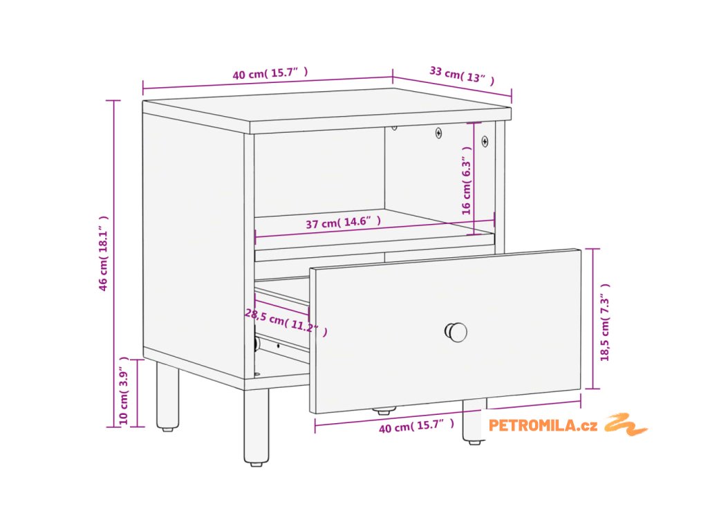 - Dostatek úložného prostoru: Noční stolek je navržen s 1 zásuvkou a 1 přihrádkou, kde budete mít vaše věci uspořádané a neustále po ruce.