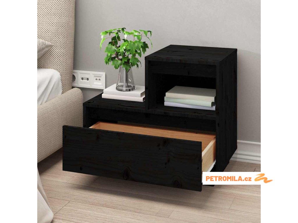Noční stolky 2 ks černé 60 x 34 x 51 cm masivní borové dřevo