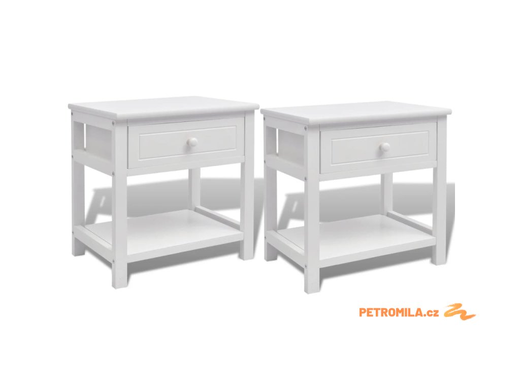 Nábytek s nejlepším designem se vyznačuje jednoduchým vzhledem s čistými liniemi a jeho styl nikdy nevyjde z módy. A právě taková je i naše sada dvou nočních stolků, které zkrášlí vaši ložnici, obývací pokoj nebo salónek. Můžete je také využít jako stolky na telefon, odkládací skříňky, úložné skříňky, prádelníky, přístavné stolky, příborníky, malé komody apod.