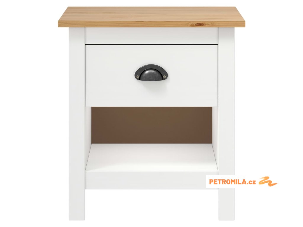 Vzhledem k univerzálnímu charakteru jej můžete také použít jako telefonní stolek nebo odkládací stolek ve vašem obývacím pokoji. Noční stolek je vyroben z masivního borového dřeva a je vysoce stabilní a odolný. Robustní horní deska je ideální pro vystavení dekorativních předmětů, jako jsou vázy a rostliny v květináčích. Dřevěný noční stolek je vybaven 1 zásuvkou a 1 policí a poskytne vám spoustu úložné prostoru pro úhledné uspořádání vašich věcí. Tato odkládací skříňka se navíc snadno čistí vlhkým hadříkem.