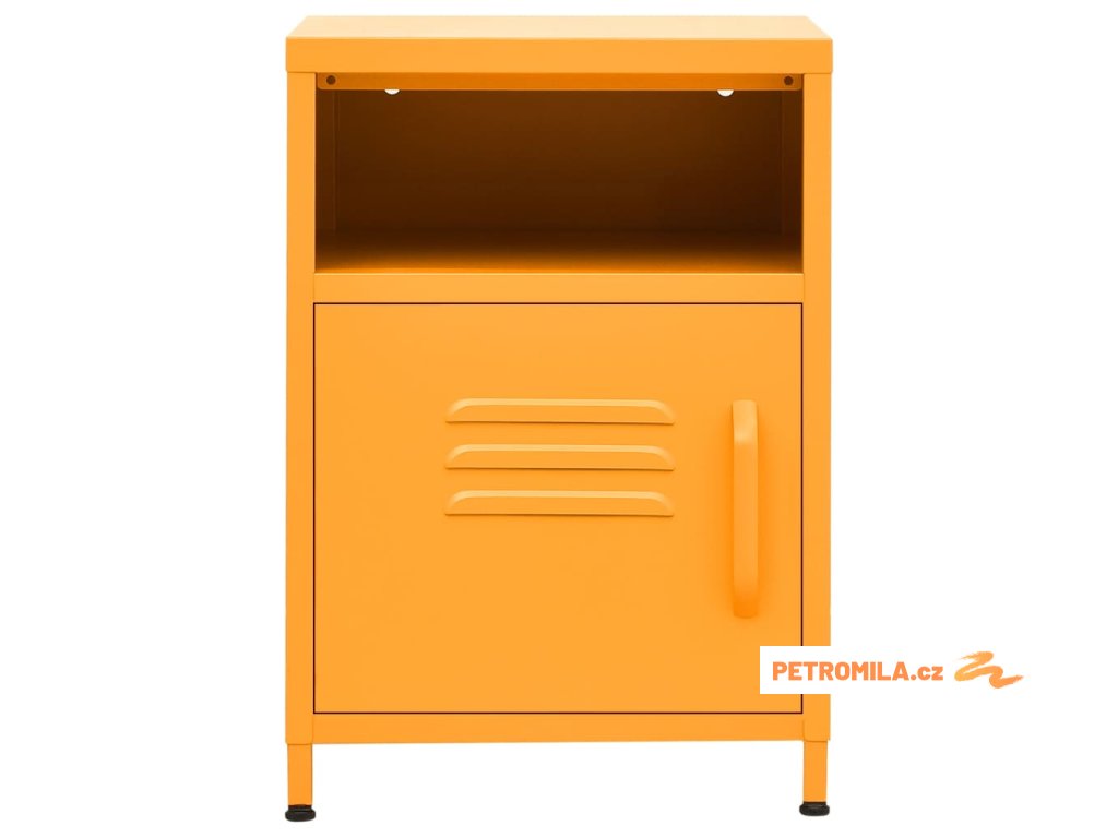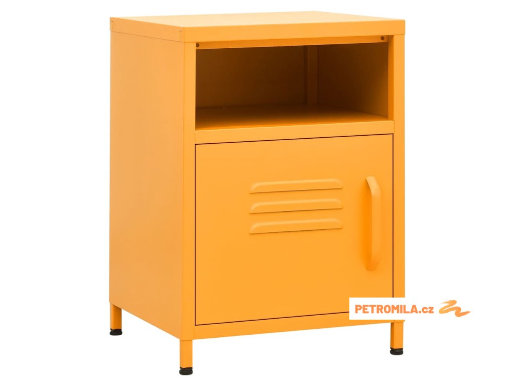 Noční stolek je vyrobený z oceli, takže je odolný a snadno se čistí. Najdete v něm 1 otevřenou přihrádku a 1 přihrádku s dvířky, které vám poskytnou spoustu místa k přehlednému uložení vašich DVD, multimediálních zařízení, knížek a dalších důležitých maličkostí tak, abyste je měli na dosah ruky. Nivelační nohy ve spodní části umožňují nastavit výšku podle vašich potřeb.