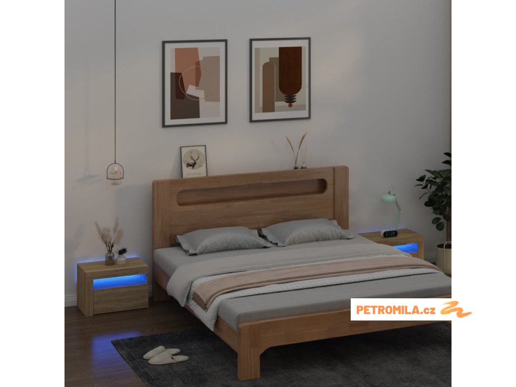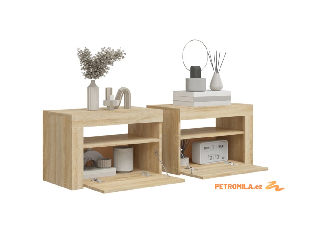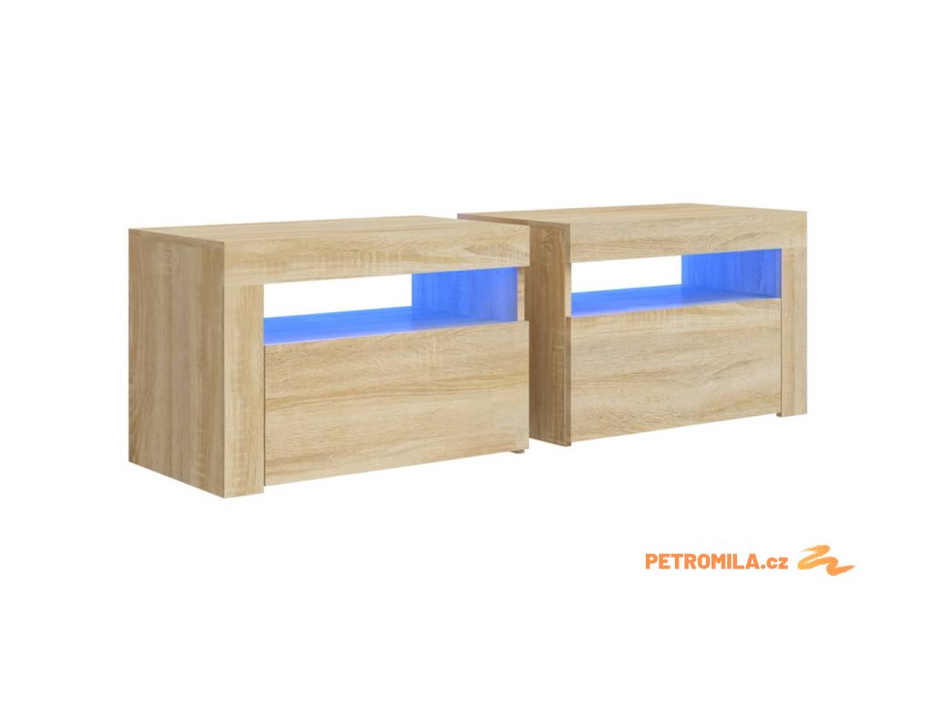 Noční stolky 2 ks s LED osvětlením dub sonoma 60 x 35 x 40 cm