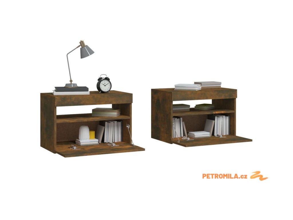 Noční stolky 2 ks s LED osvětlením kouřový dub 60 x 35 x 40 cm