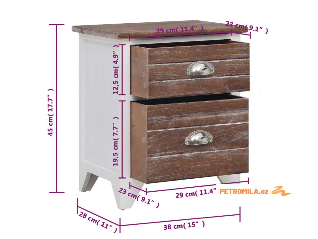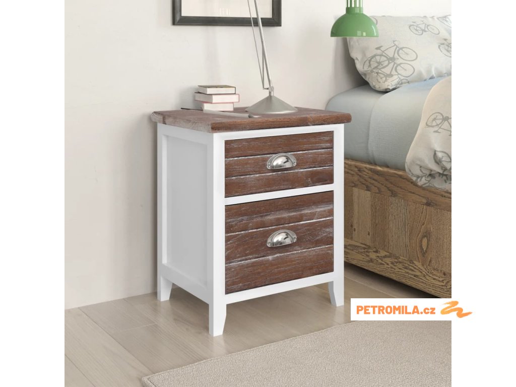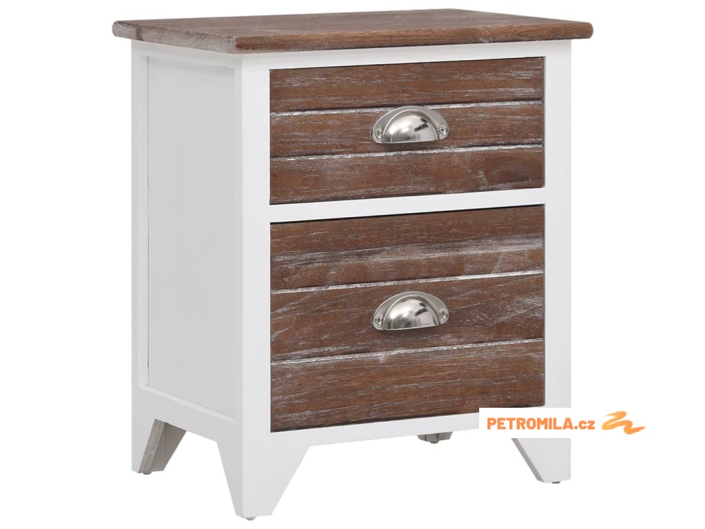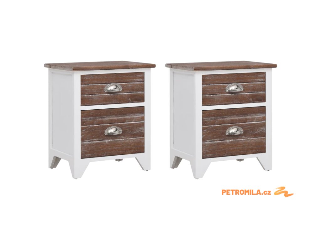 Noční stolky 2 ks se 2 zásuvkami hnědé a bílé