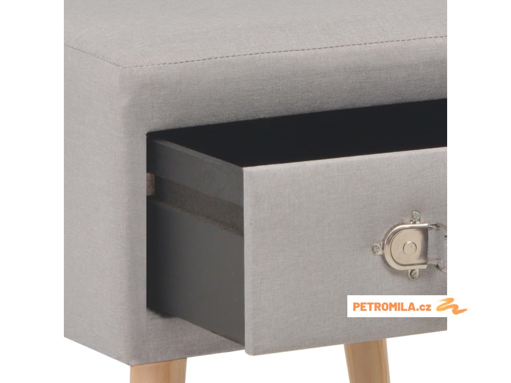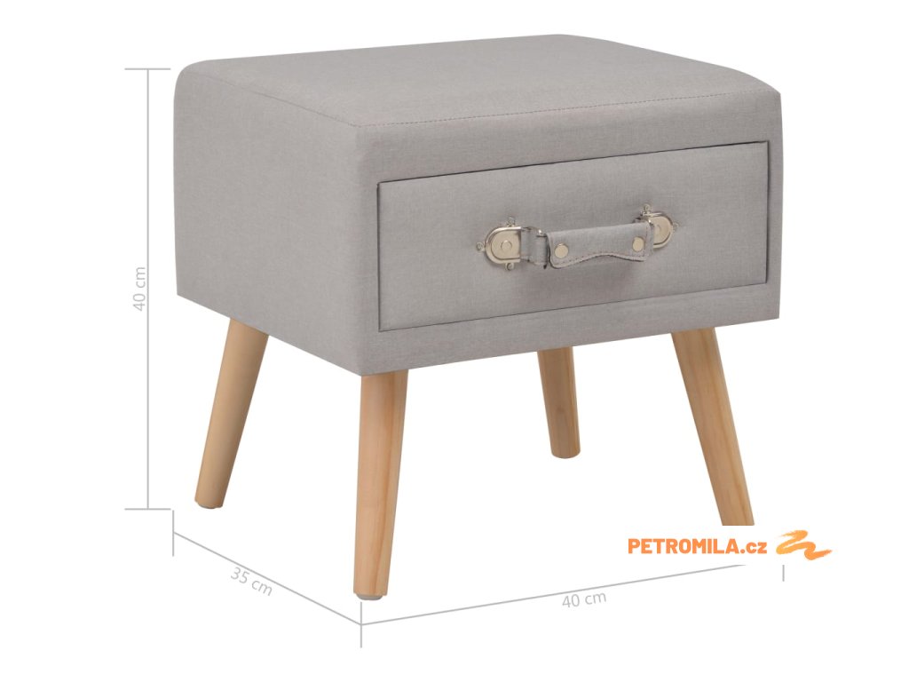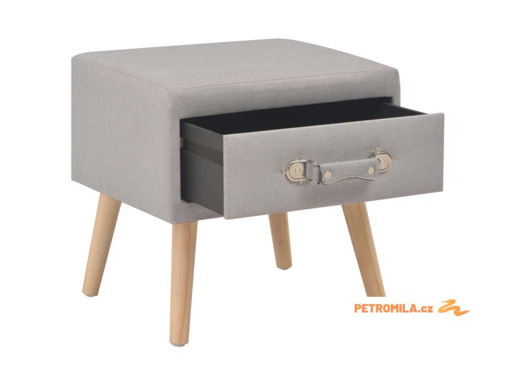 Noční stolek byl mistrně zhotoven z látky a masivního borového dřeva, je tedy mimořádně odolný a trvanlivý. Disponuje zásuvkou, jež se hladce otevírá a zavírá a poskytne vám spoustu místa, kde si můžete přehledně uspořádat různé drobnosti, které chcete mít po ruce. Můžete ho navíc také použít jako skříňku do ložnice, klasickou skříňku se zásuvkou atd. Noční stolek se snadno sestavuje.