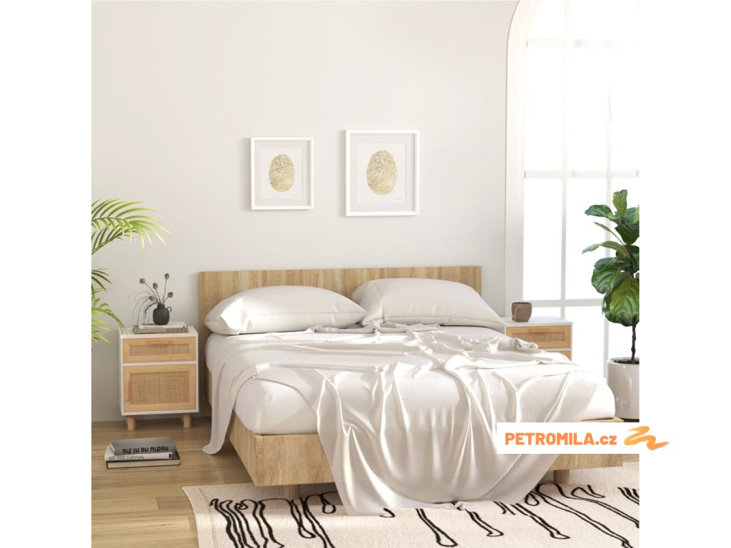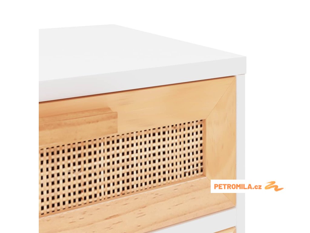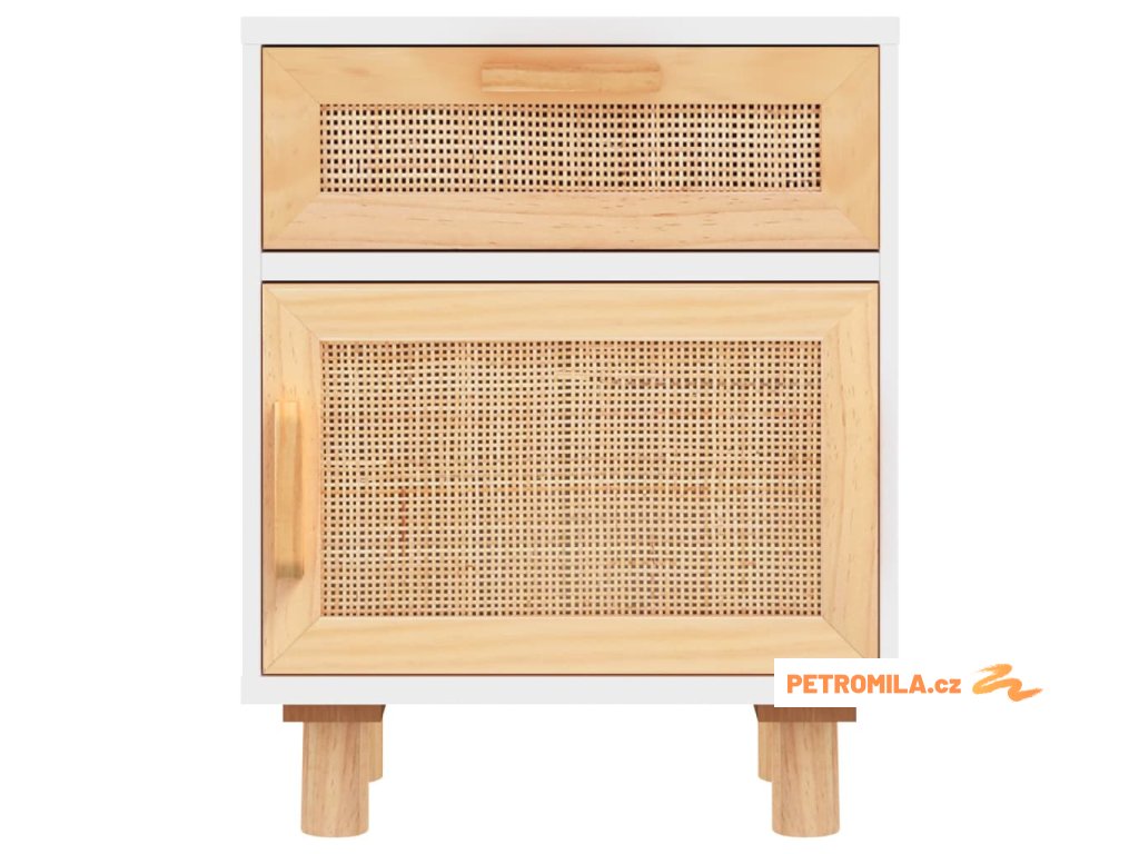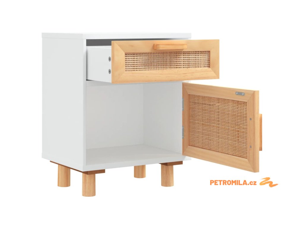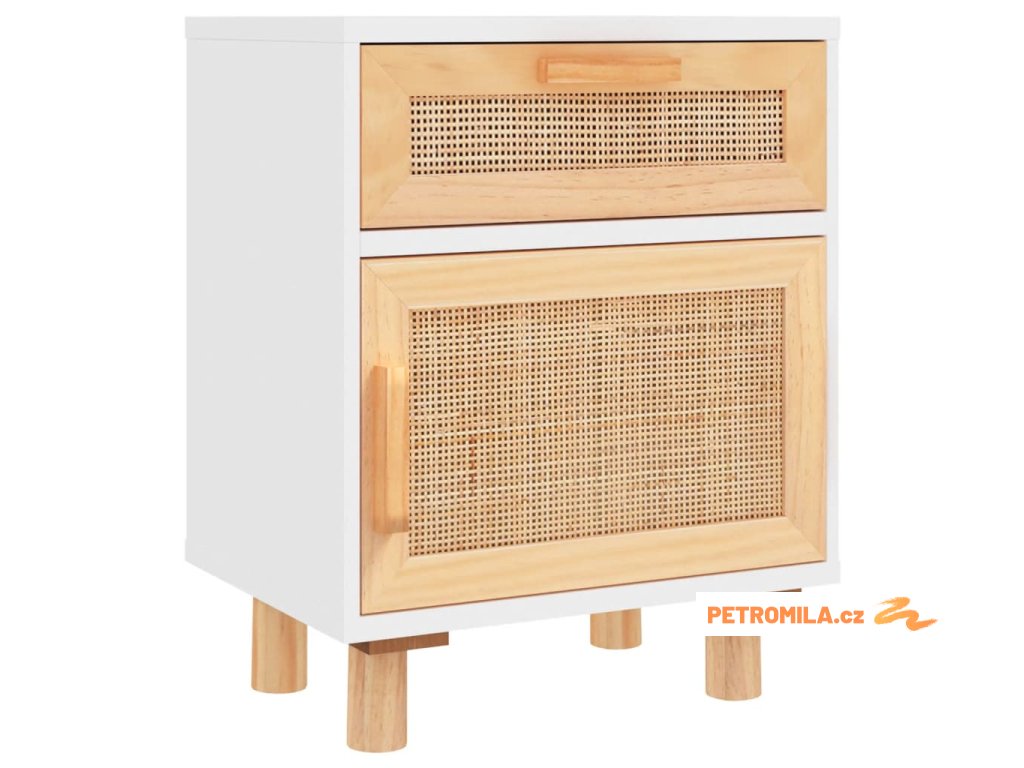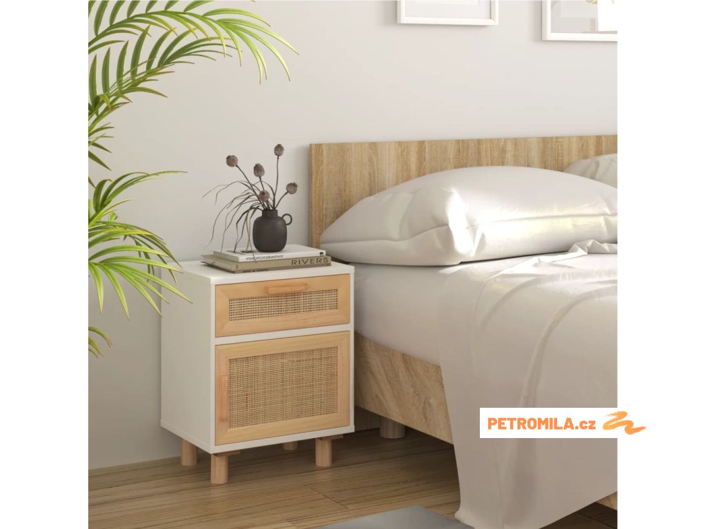 Noční stolky bílé masivní borovice a přírodní ratan