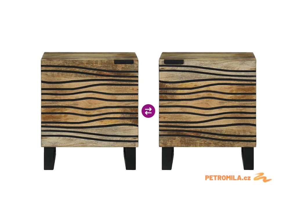 Tento hezký noční stolek dodá každé ložnici nádech elegance. Je navržený tak, aby byl funkční a zároveň spojoval styl s praktickým úložným prostorem, takže je skvělým parťákem pro tvou postel. Hladký povrch krásně ukazuje přírodní krásu mangového dřeva a spojuje moderní vzhled s nadčasovým šarmem. S jeho jedinečným vlnitým designem není jen kus nábytku - je to stylový prvek, který perfektně zapadne do různých typů prostředí, od minimalistického po současný.