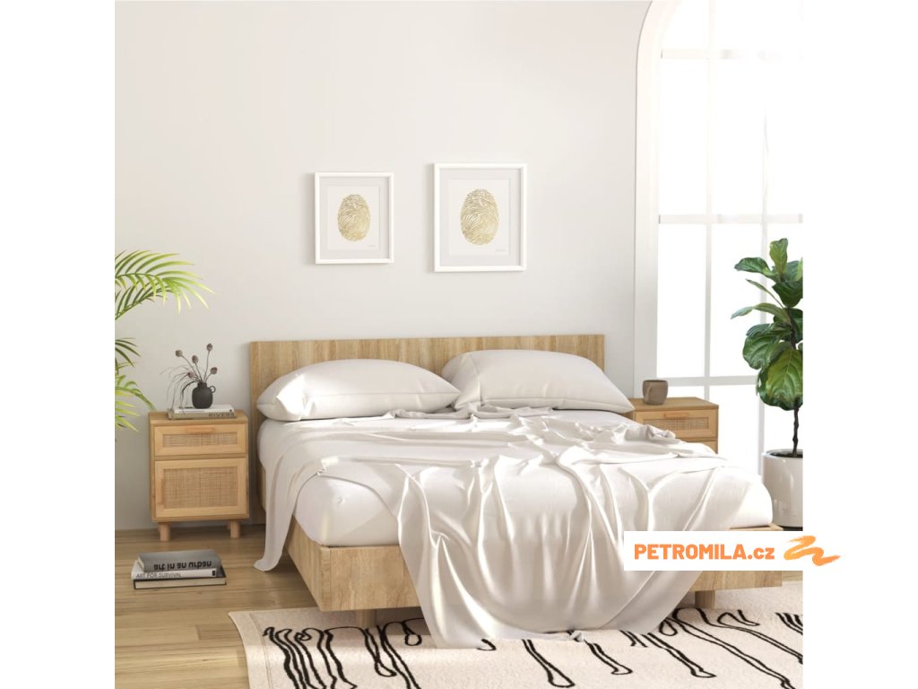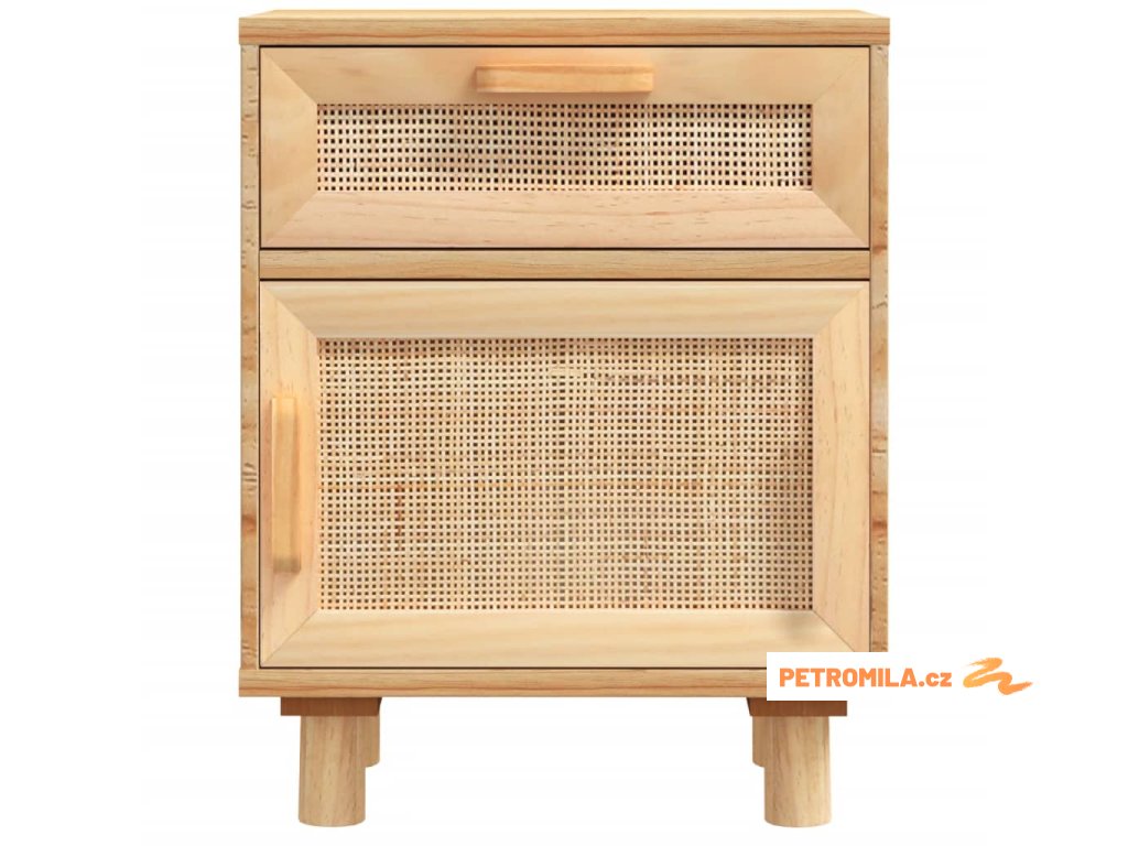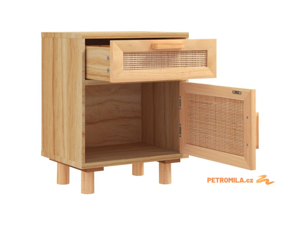 Noční stolky hnědá masivní borovice a přírodní ratan
