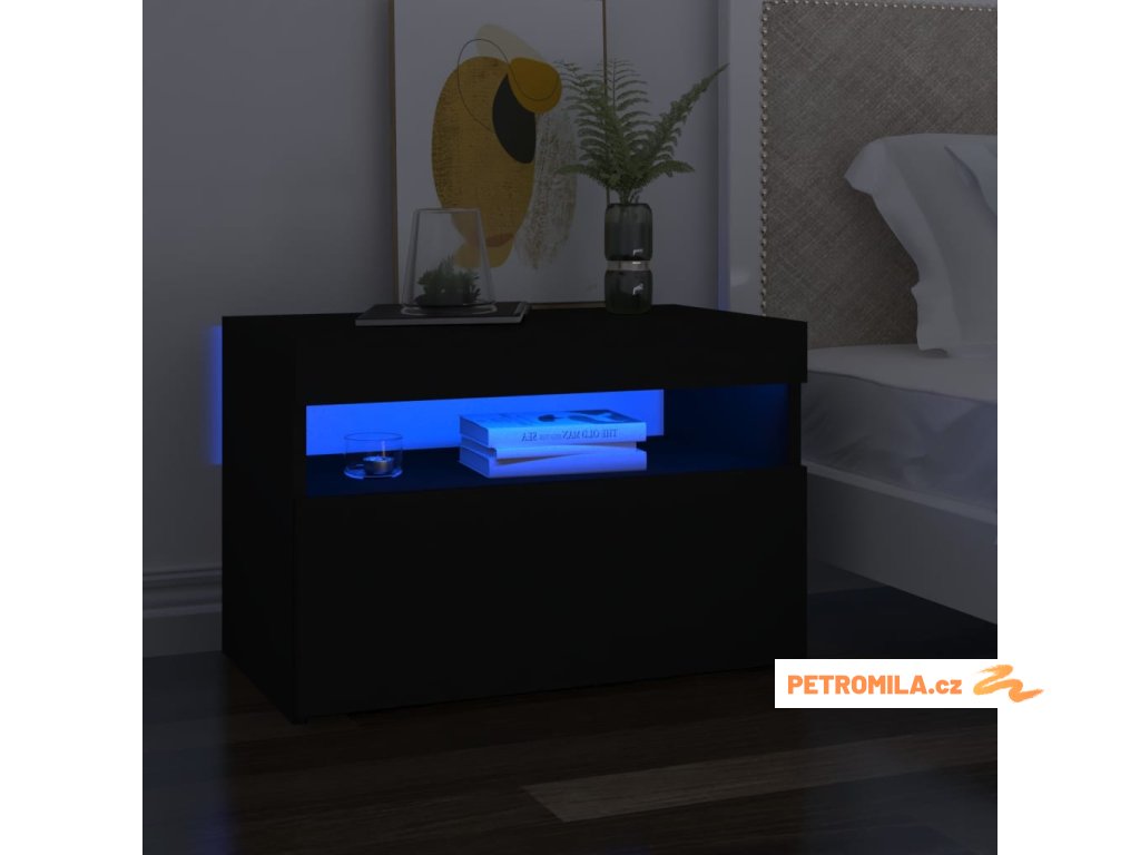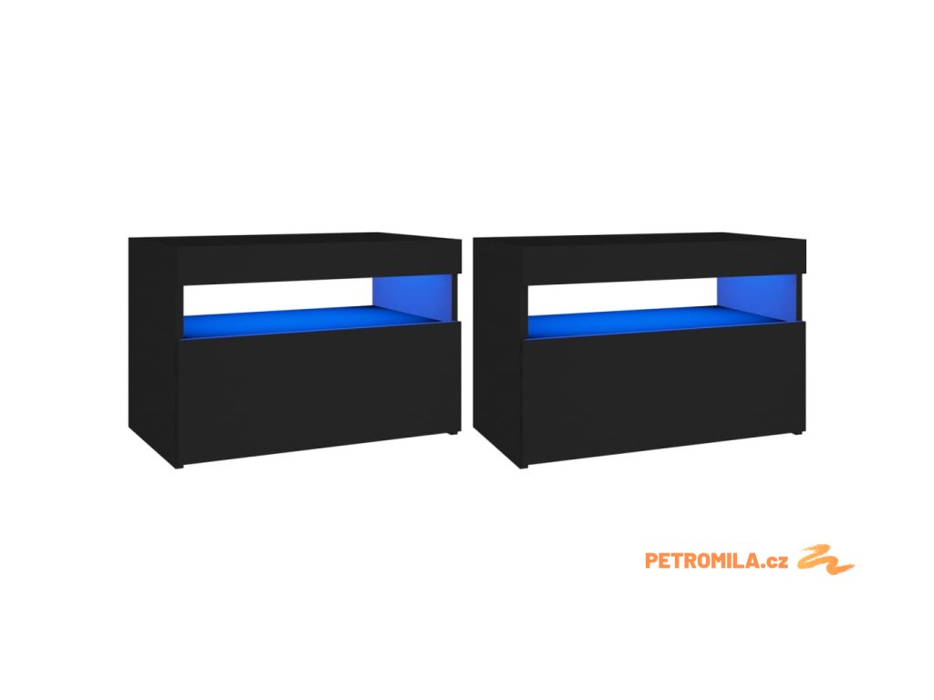 Noční stolky LED osvětlení 2 ks černé 60x35x40 kompozitní dřevo