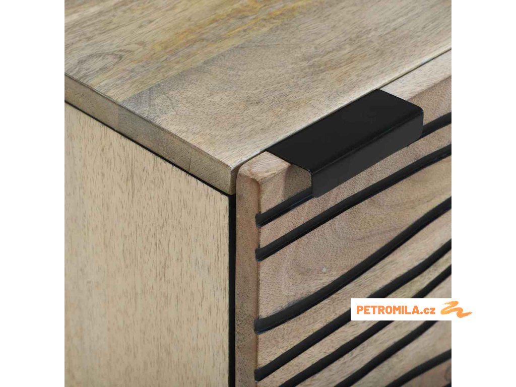 Tento hezký noční stolek dodá každé ložnici nádech elegance. Je navržený tak, aby byl funkční a zároveň spojoval styl s praktickým úložným prostorem, takže je skvělým parťákem pro tvou postel. Hladký povrch krásně ukazuje přírodní krásu mangového dřeva a spojuje moderní vzhled s nadčasovým šarmem. S jeho jedinečným vlnitým designem není jen kus nábytku - je to stylový prvek, který perfektně zapadne do různých typů prostředí, od minimalistického po současný.
