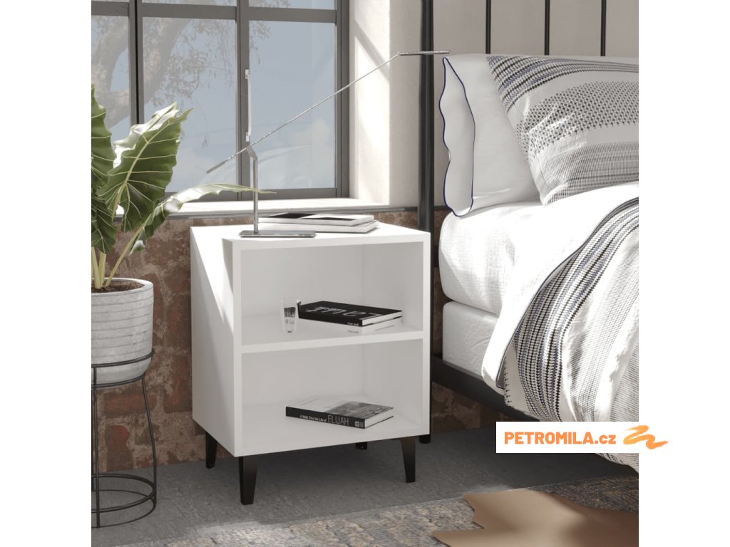 Noční stolky s kovovými nohami 2 ks bílé 40 x 30 x 50 cm