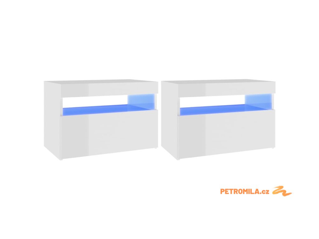 Noční stolky s LED osvětlením 2 ks bílé vysoký lesk 60x35x40 cm