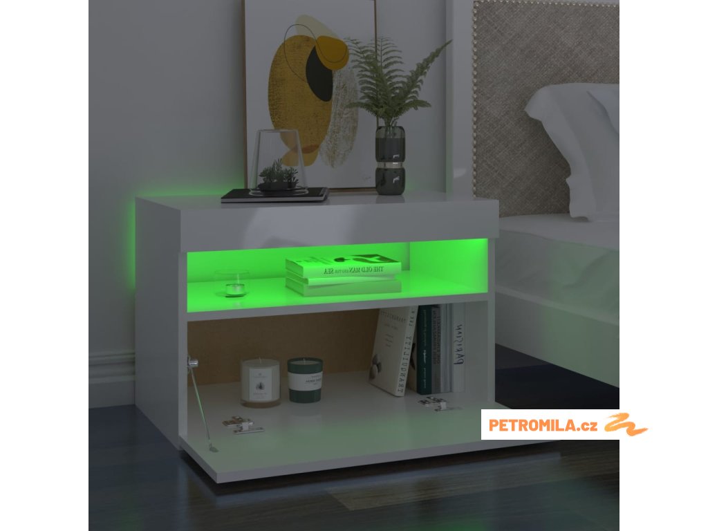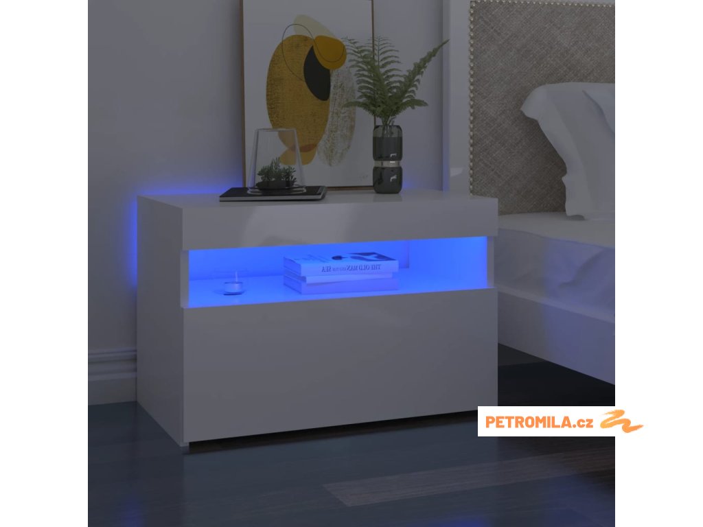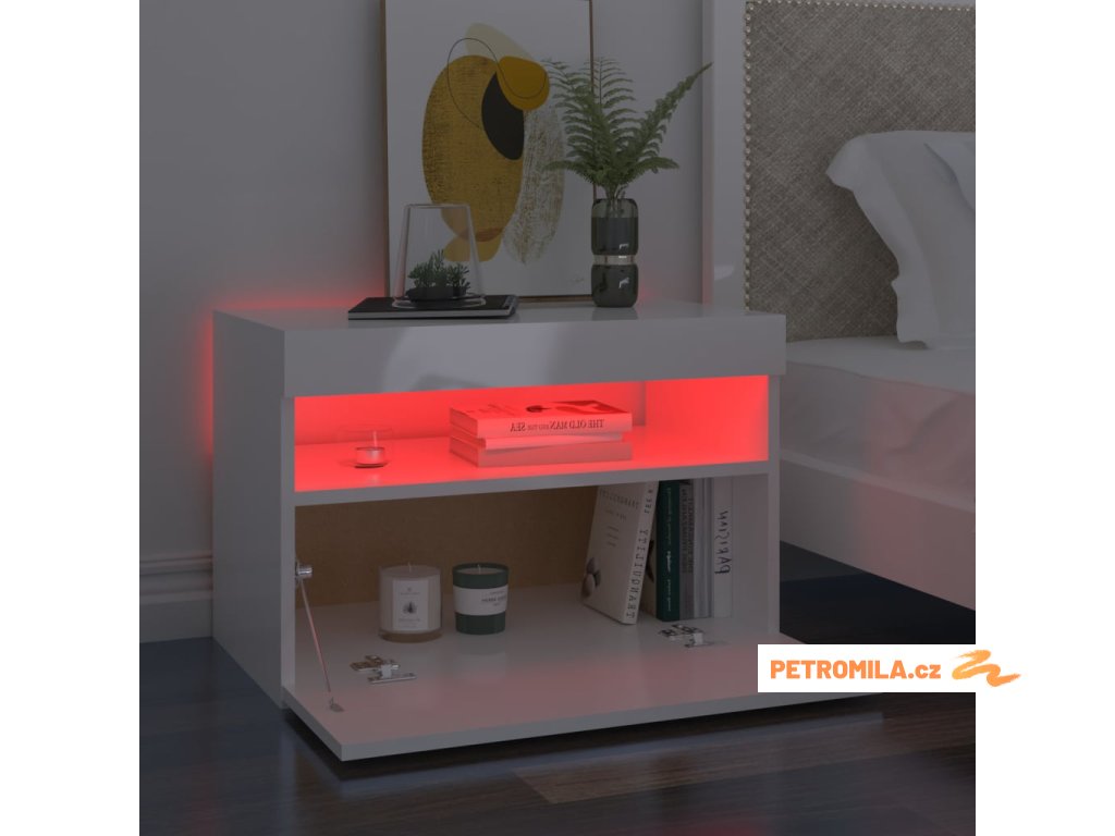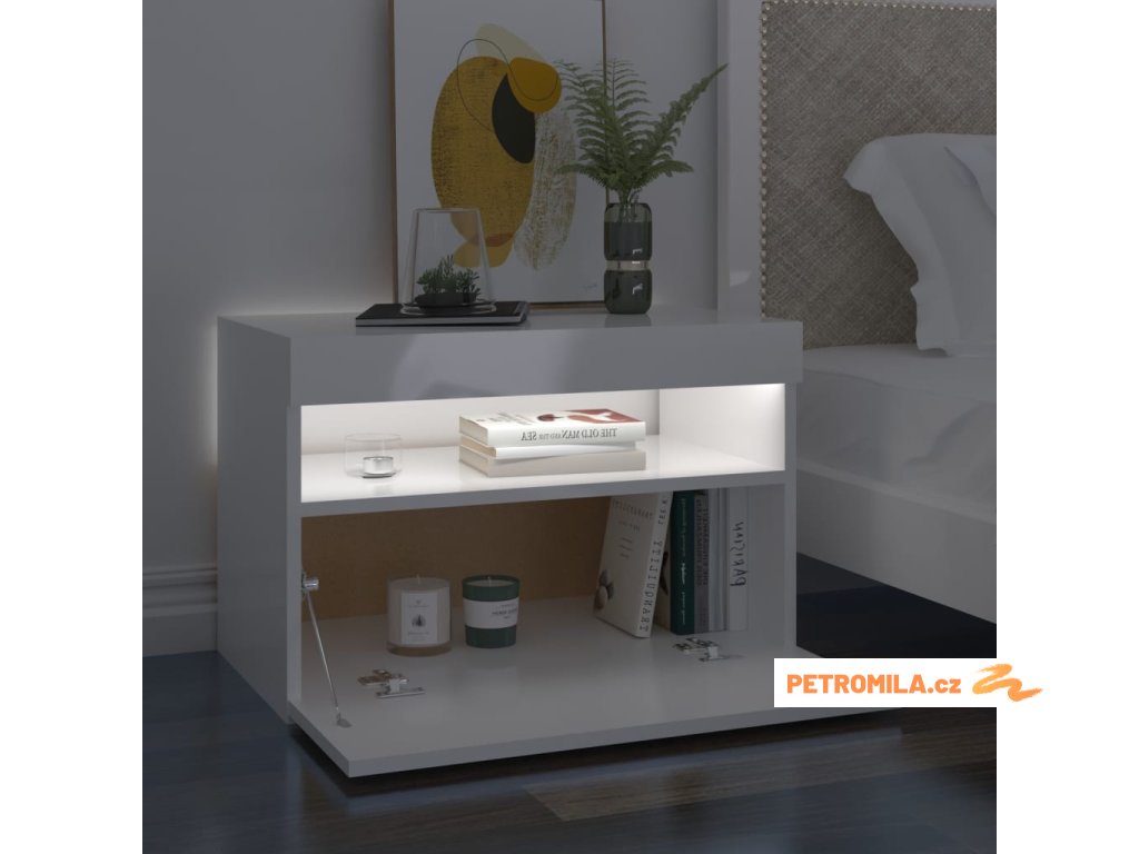 Moderní a praktický design těchto nočních stolků s LED osvětlením zaujme ve vašem pokoji na první pohled.